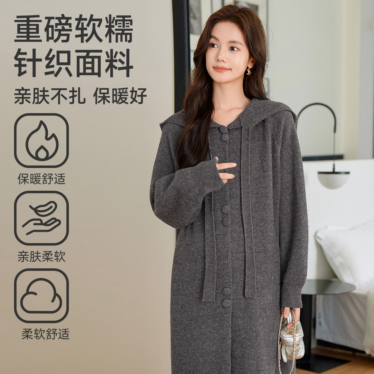 婧麒孕妇装连衣裙外套秋冬2025新款冬装针织连帽开衫的穿搭秋装女