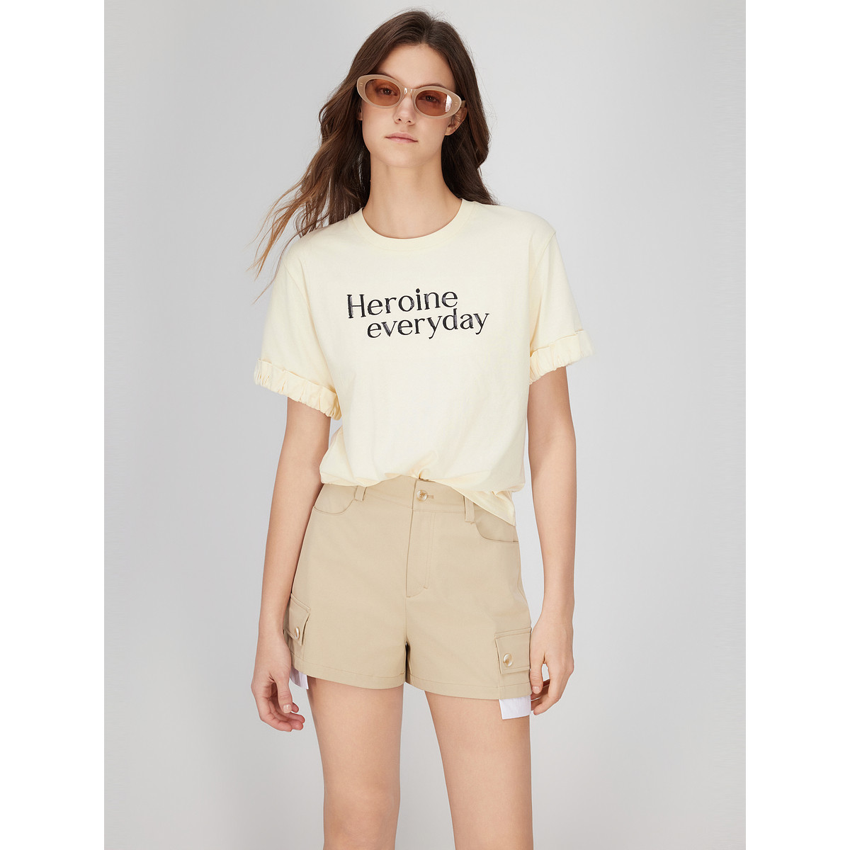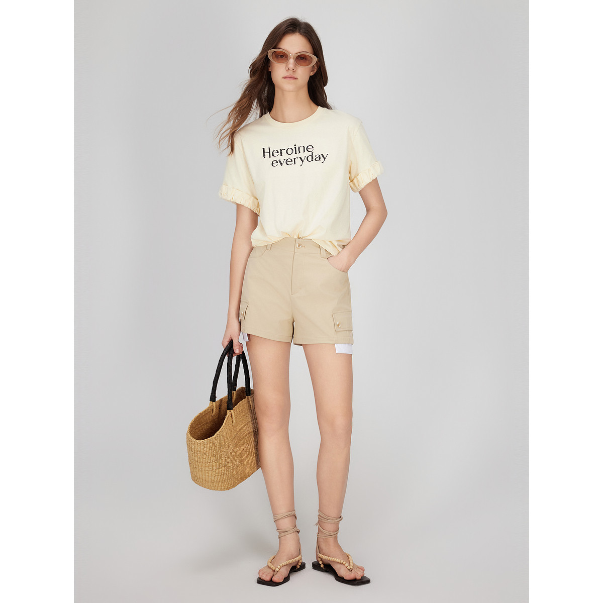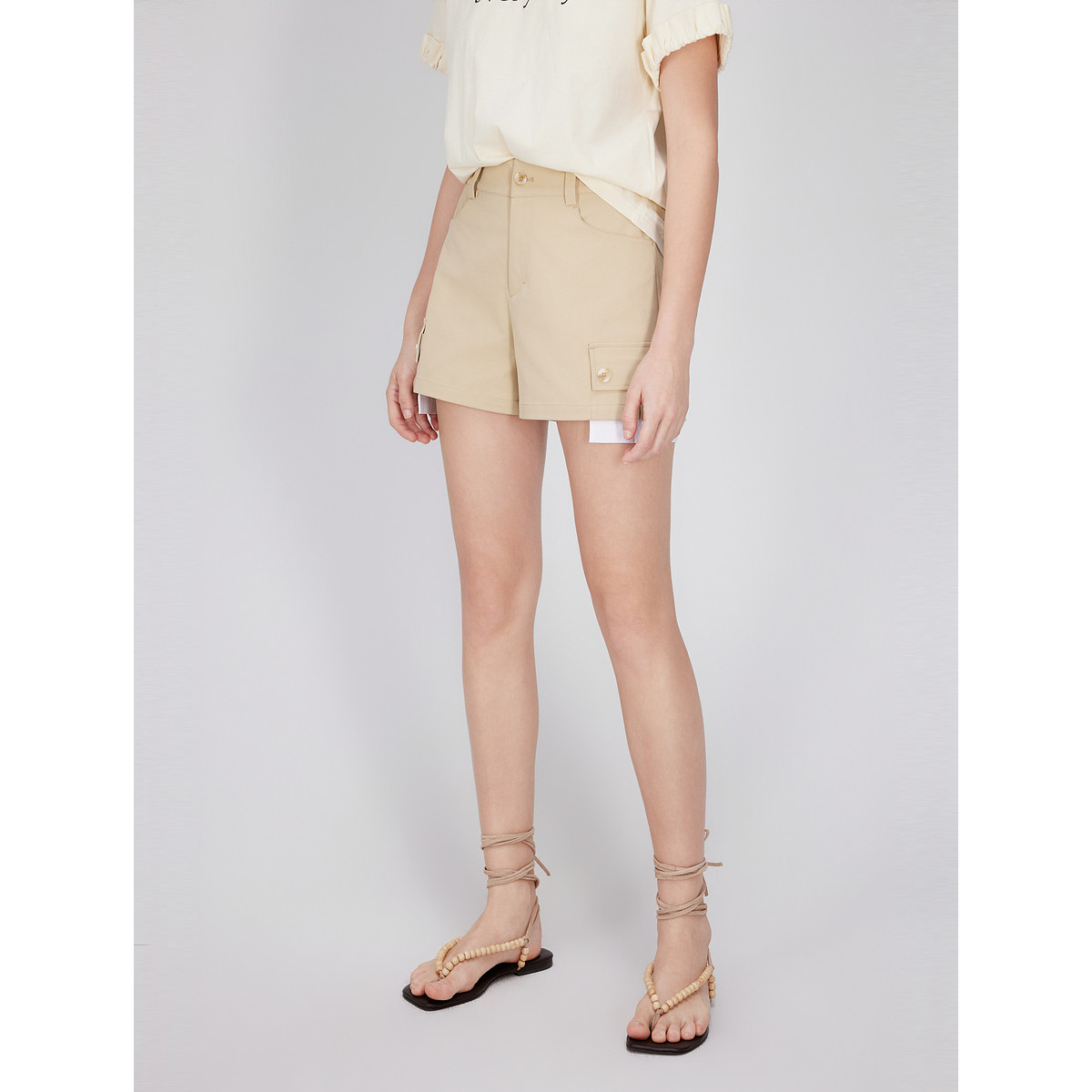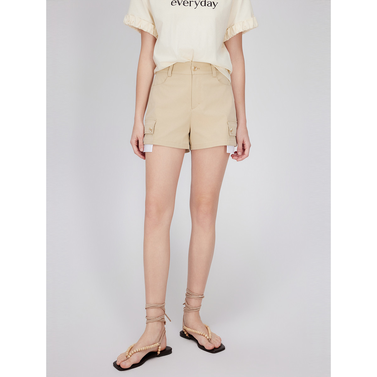 ELLE卡其色法式工装风休闲短裤女2025夏季新款小个子显高显瘦裤子