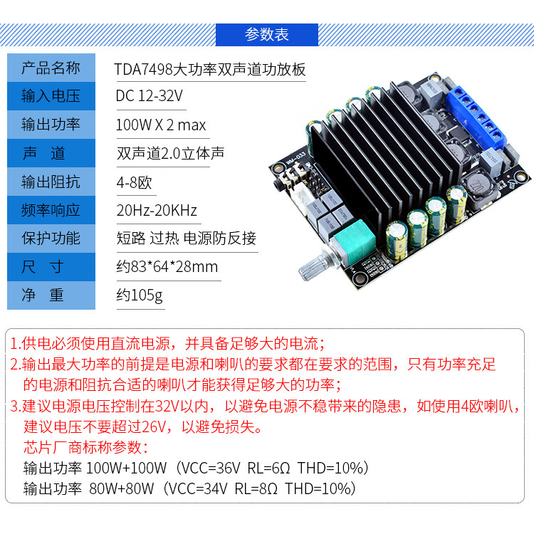 发烧级TDA7498大功率HIFI家用汽车音响游戏机数字音频功放板100W