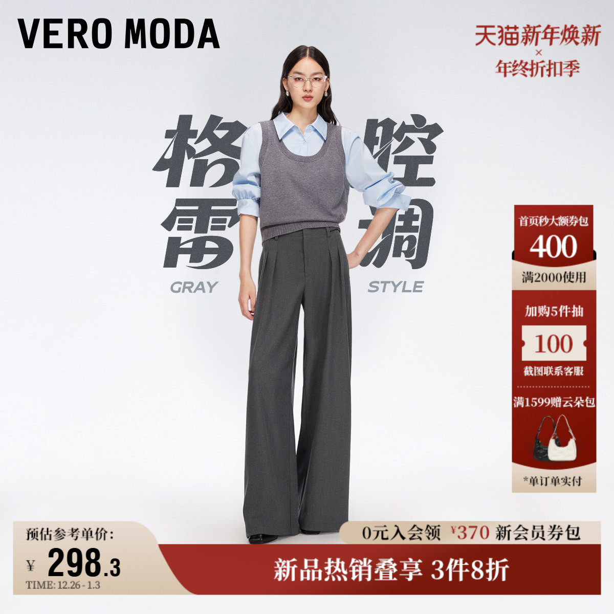 【格雷腔调】Vero Moda休闲裤女2025秋冬新款纯色捏褶直筒西装裤