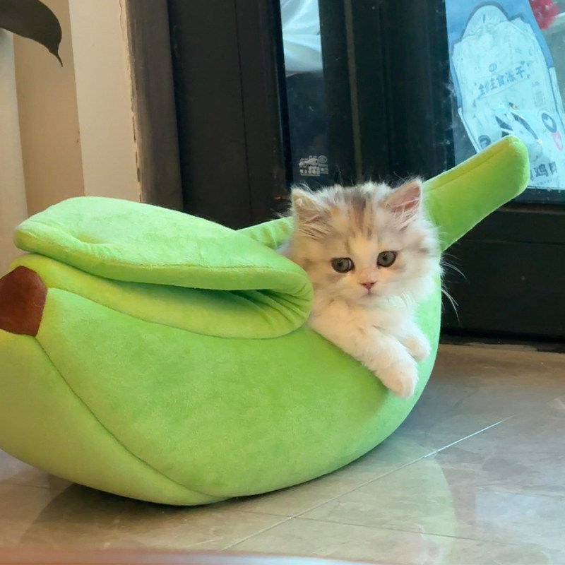 香蕉猫窝封闭式感四季通用宠物窝毛绒可爱不粘毛小型犬狗窝