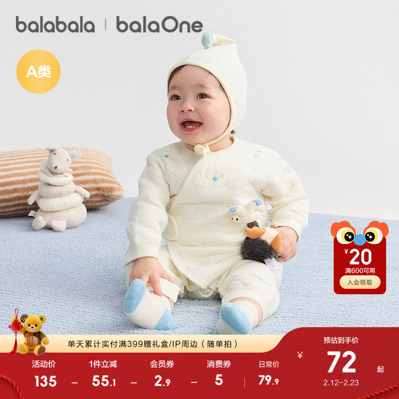 婧麒新生儿婴儿衣服秋冬夹棉满月纯棉初生宝宝秋装连体衣a类爬服