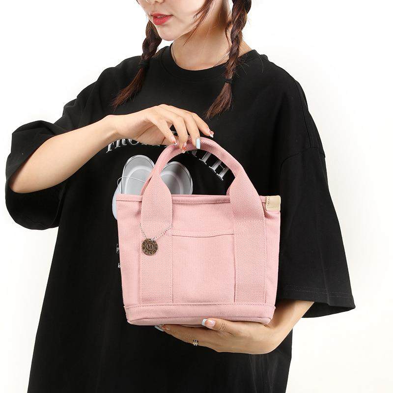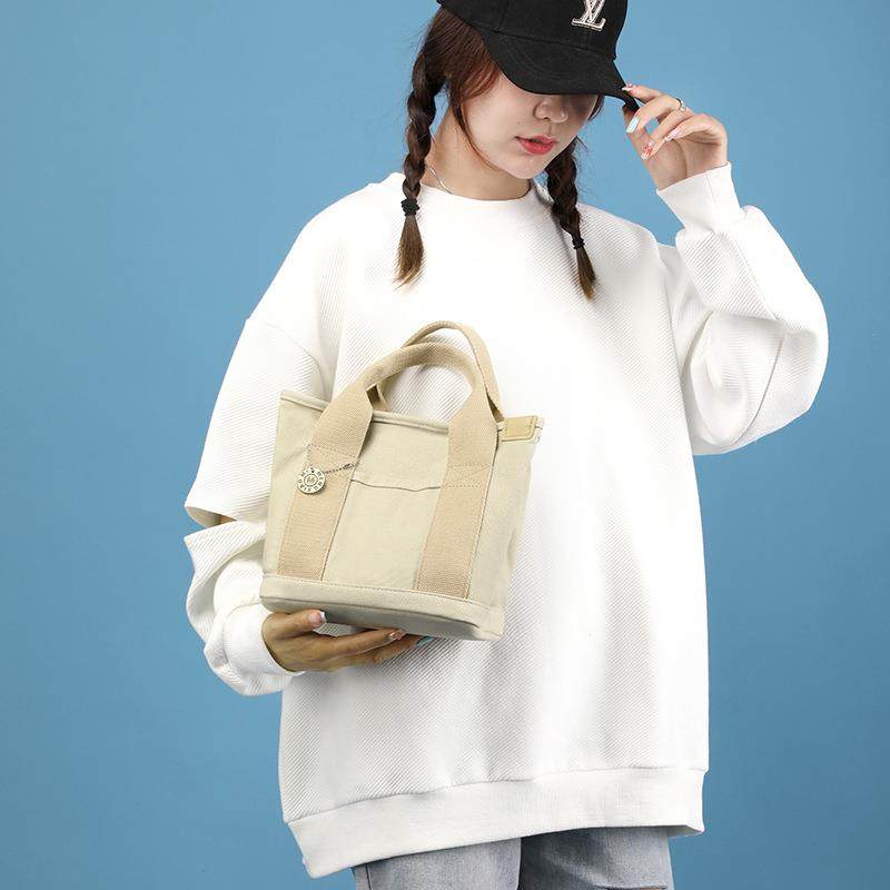 新款日系帆布包大容量手提便当袋包多隔层带饭包便当盒包单肩多层