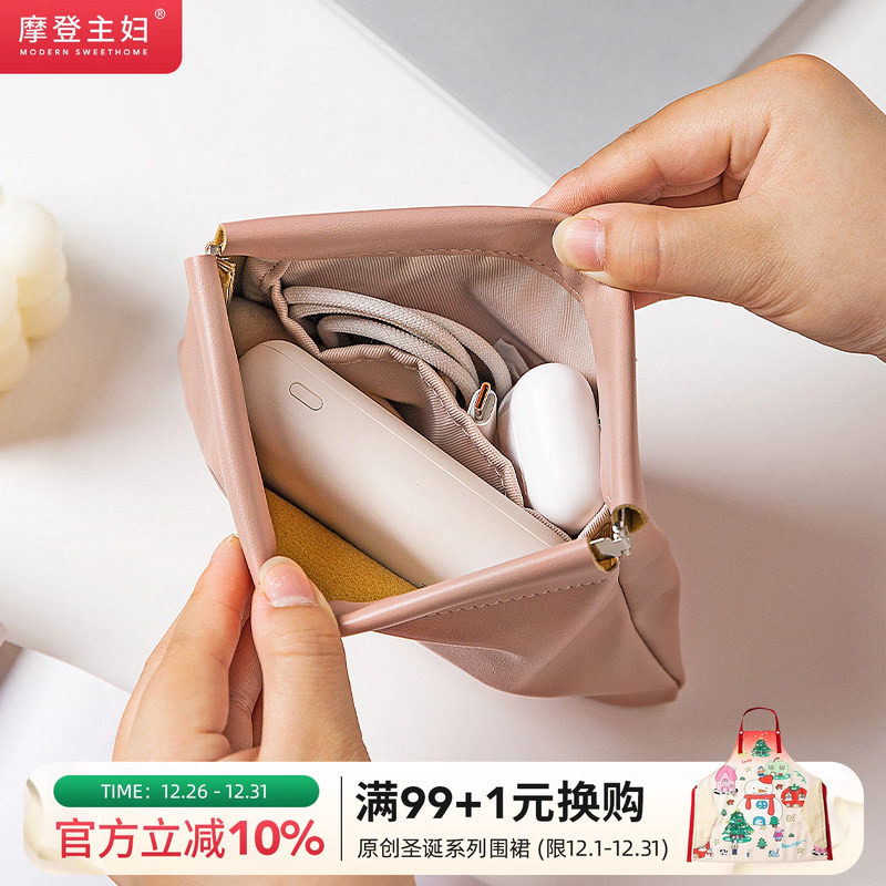 摩登主妇自动闭合收纳包外出便捷化妆内胆包小包数据线口红零钱包