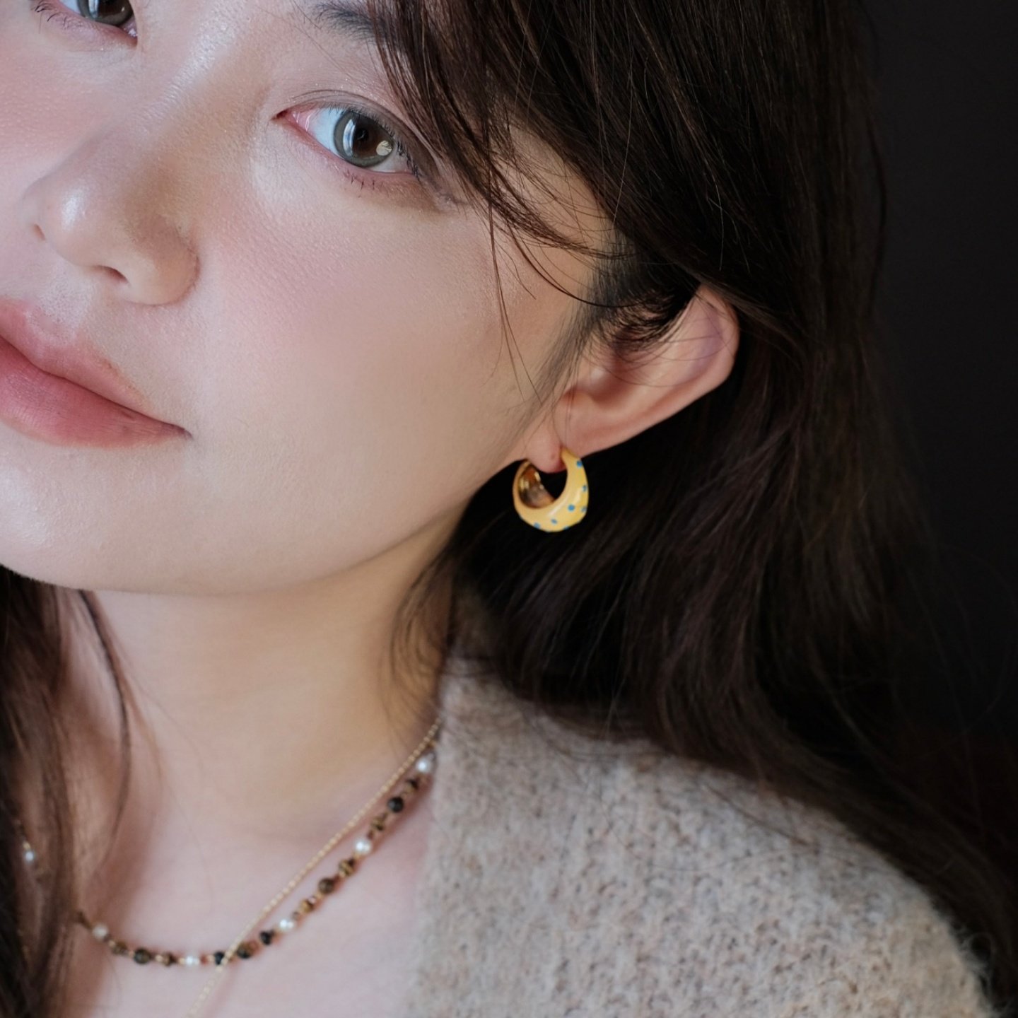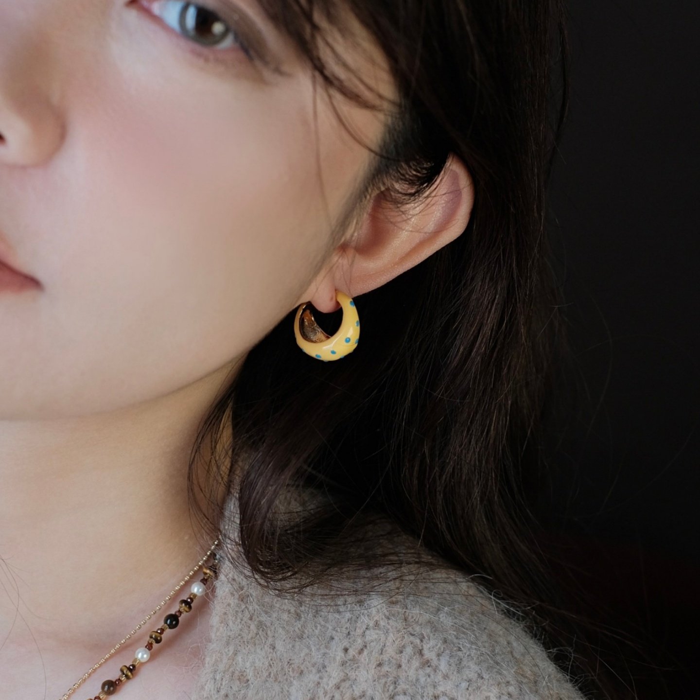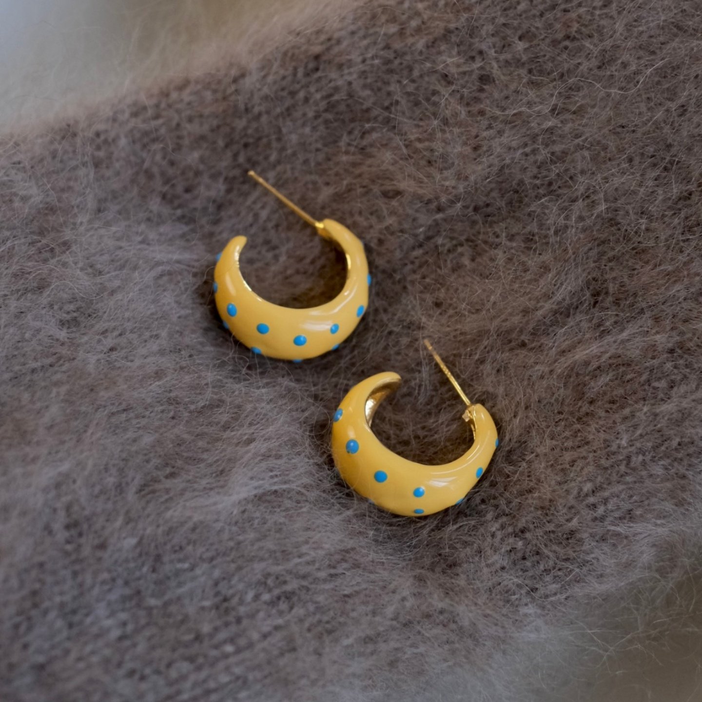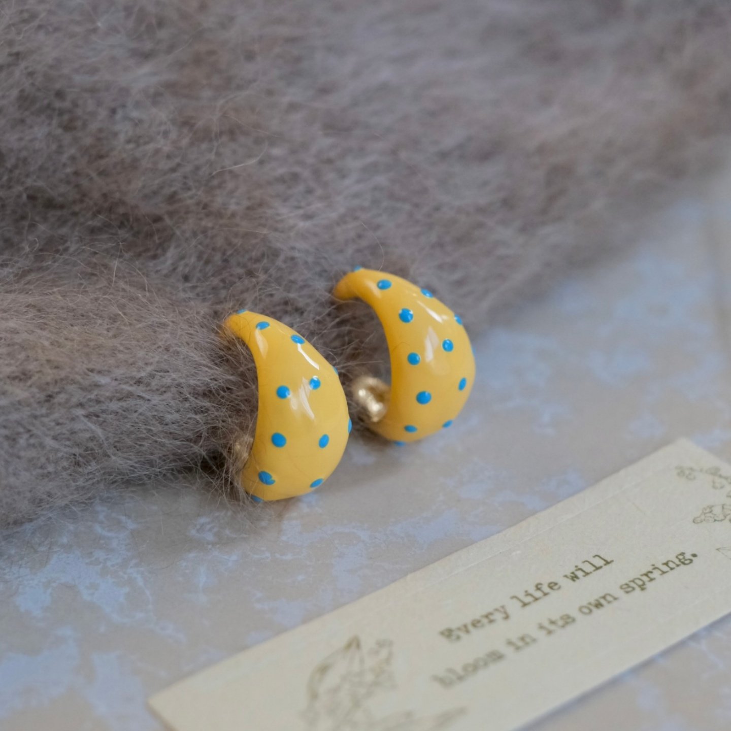 《芝士乳酪》手绘波点!多巴胺甜美珐琅C形撞色耳环耳饰耳夹耳钉