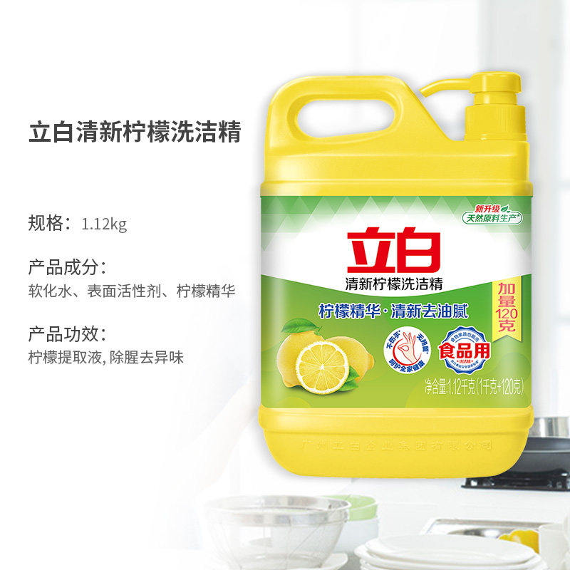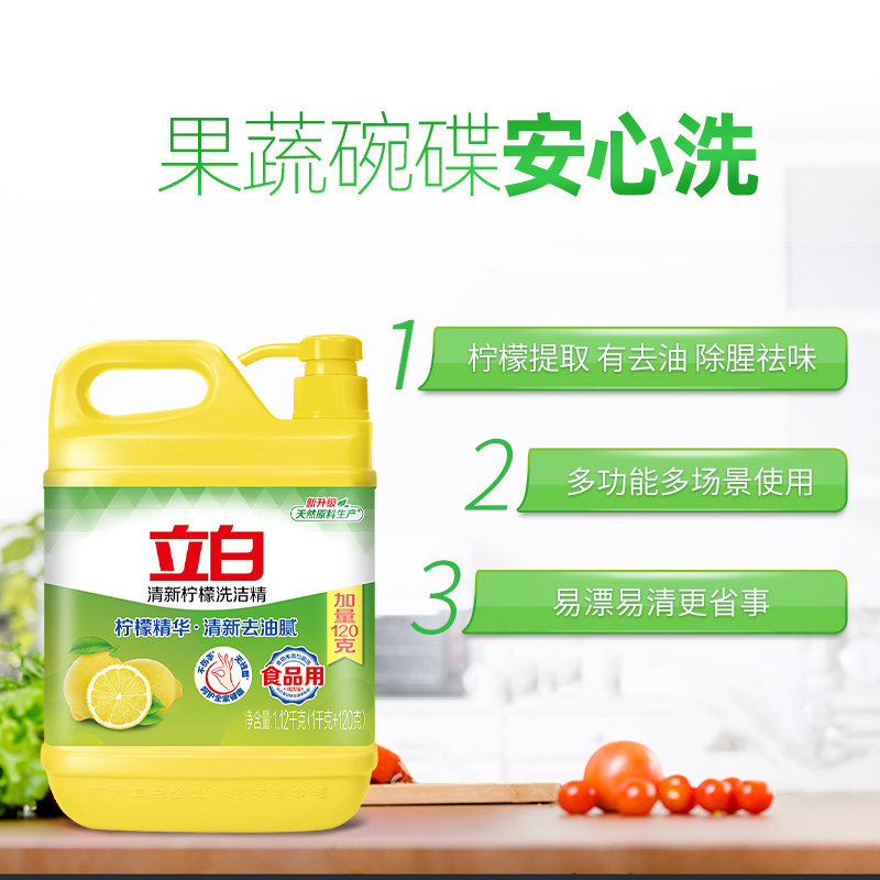 立白柠檬洗洁精1.12kg家用实惠家庭装洗涤剂洗碗液食品用果蔬去油