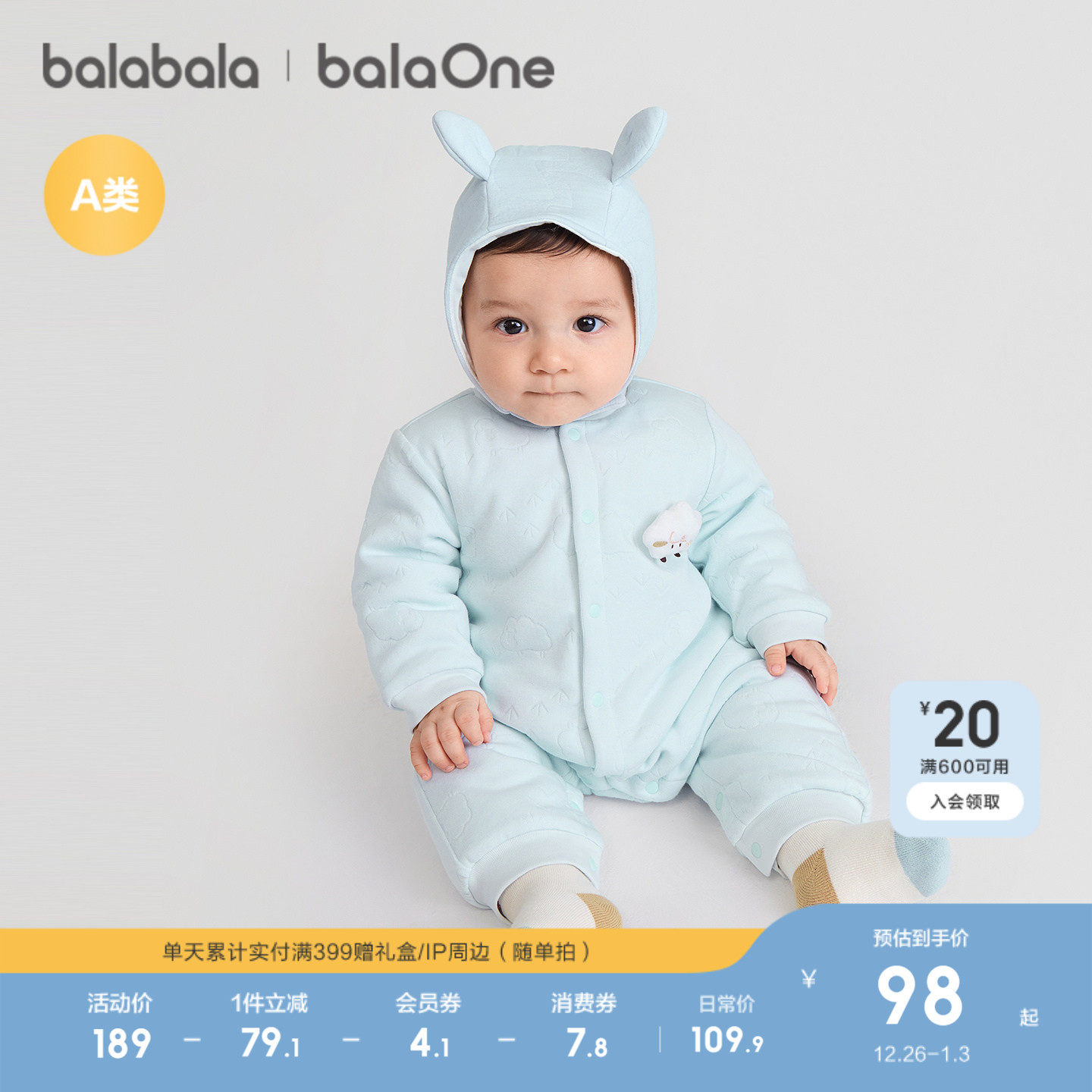 巴拉巴拉新生婴儿连体衣夹棉冬装2025款秋冬宝宝衣服爬服哈衣可爱