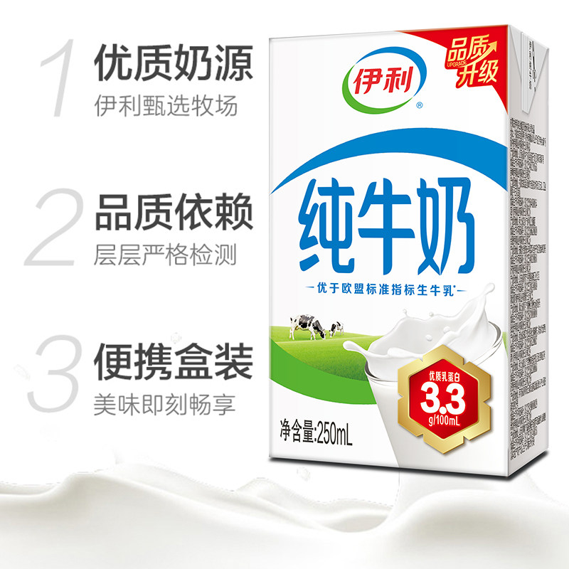 伊利官方旗舰店纯牛奶250ml*16盒整箱学生营养早餐限时抢【9月】