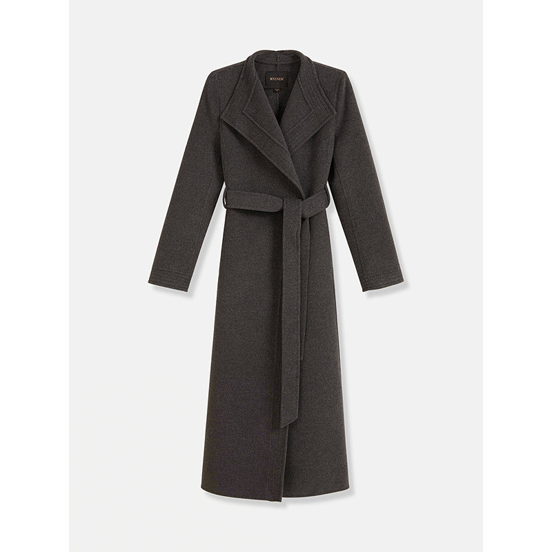 RUISHI芮时重磅驼绒桑蚕丝羊毛慵懒两穿领灰色毛呢大衣秋冬外套女