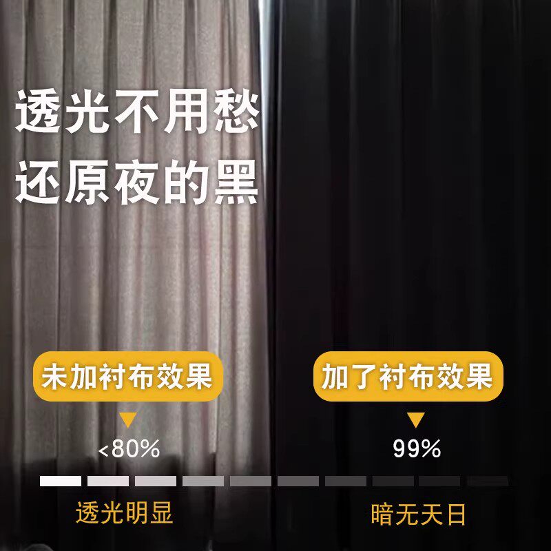 窗帘遮光窗户神器内衬布卧室加装一层全遮光布飘窗防晒隔热遮阳帘