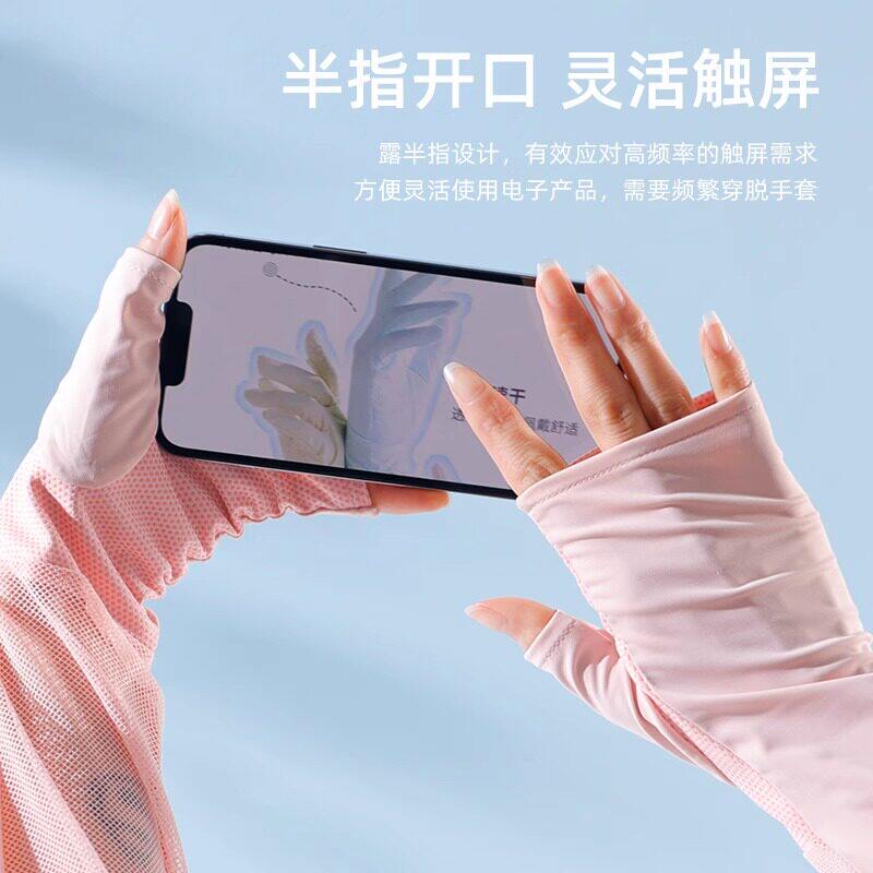 夏季开车防晒袖套女防紫外线半指长款冰丝手袖骑行护臂袖网纱手套