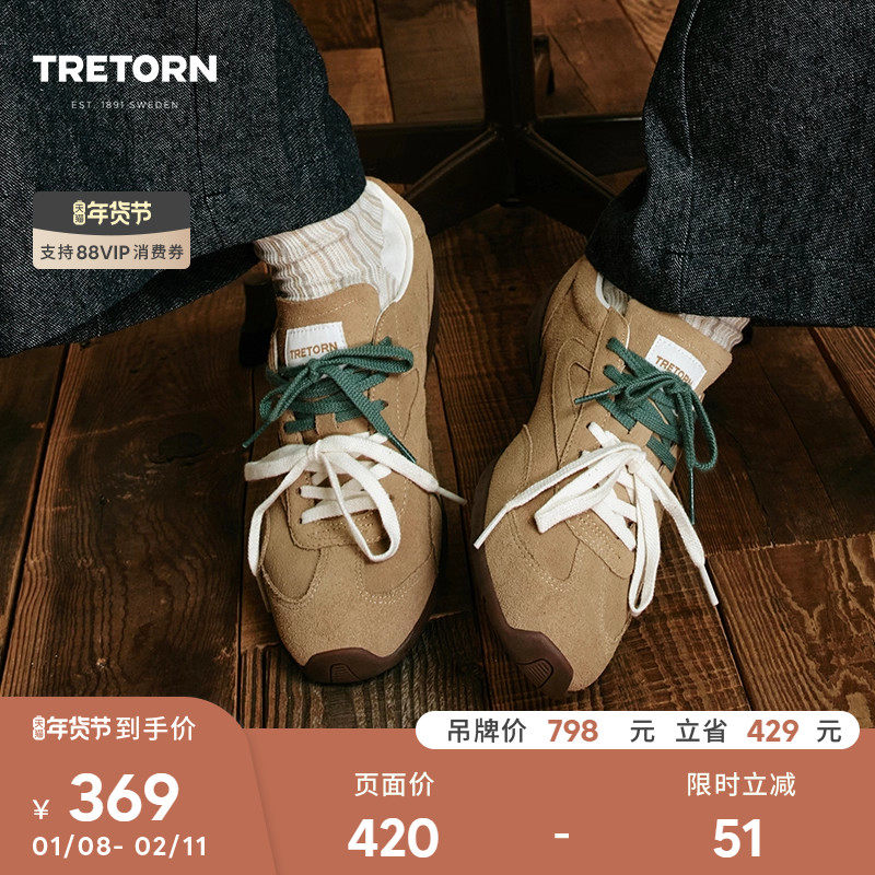 【百亿补贴】TRETORN秋冬保暖款内增高1cm男女德训鞋情侣薄底鞋