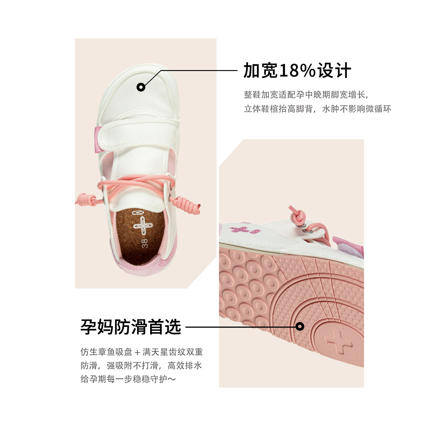 THEMULE勃肯鞋丑萌大头鞋帆布鞋女一脚蹬孕妇鞋粉色休闲板鞋足弓