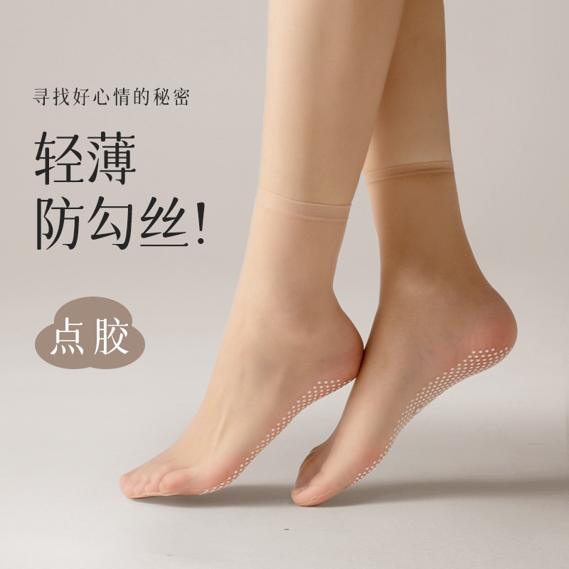 丝袜女短袜夏季隐形防勾丝无痕防滑薄款中筒袜水晶袜裸感棉底轻薄