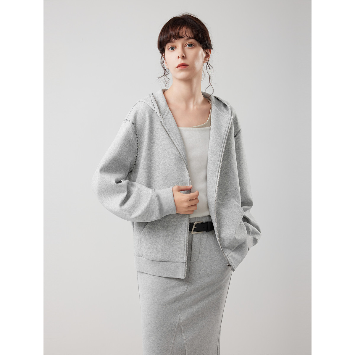 【商场同款】ELLE灰色连帽针织卫衣外套女2025秋季新款休闲上衣