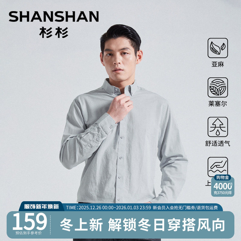 杉杉官方亚麻衬衫男士新款莱赛尔亲肤透气休闲长袖衬衣商务外套