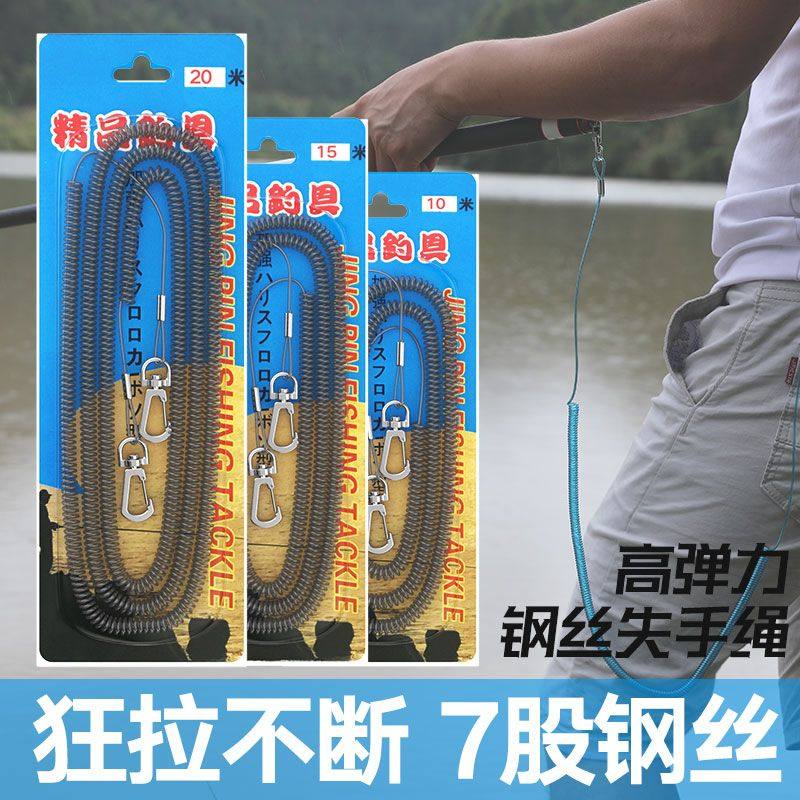鱼竿失手绳弹力钢丝伸缩护竿放杆绳溜鱼绳钓鱼用品垂钓渔具配件