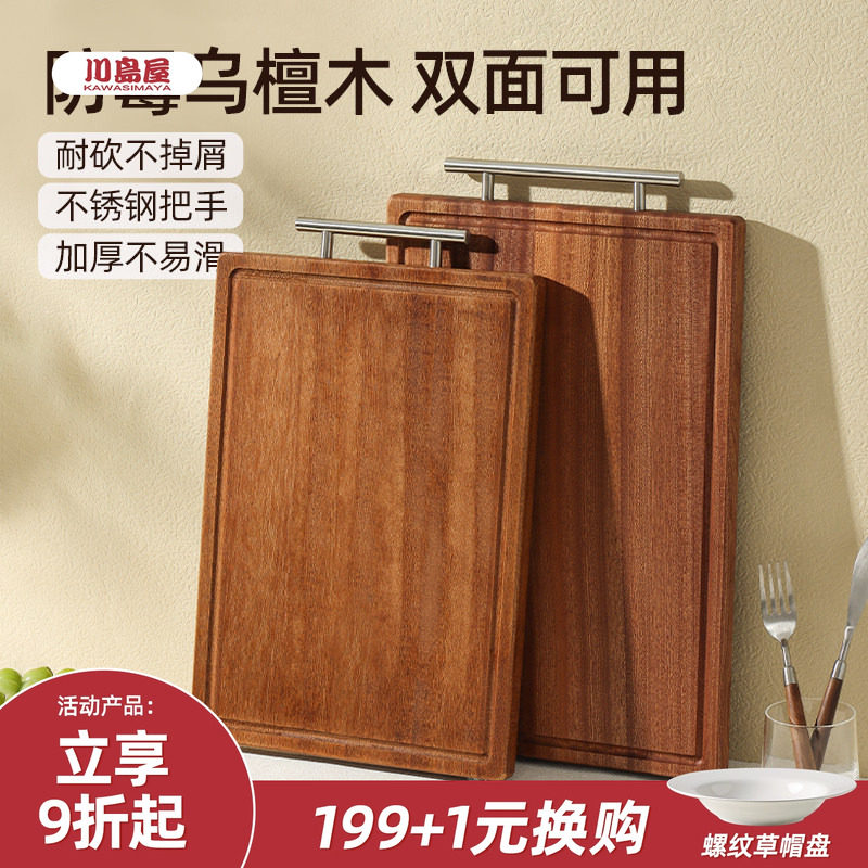 川岛屋乌檀木菜板防霉抗菌家用砧板实木粘板切水果案板厨房切菜板