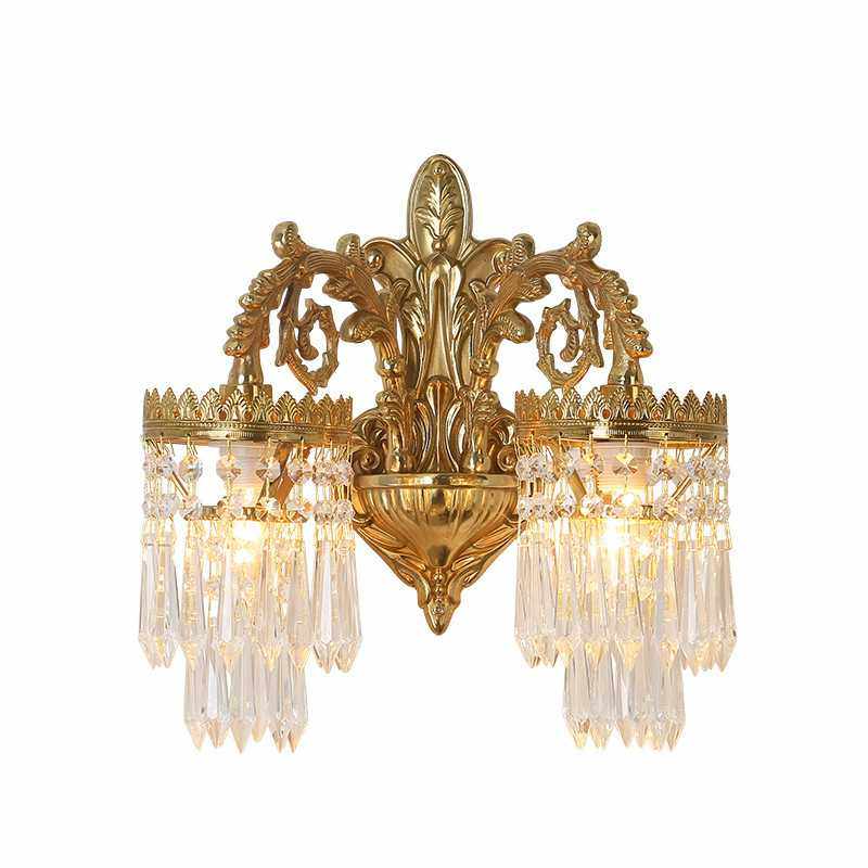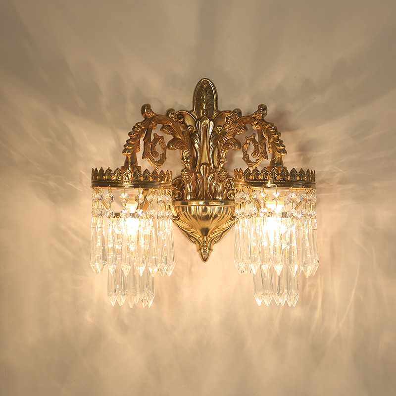 欧式全铜客厅壁灯 法式水晶卧室背景墙床头楼梯墙灯镜前过道灯具