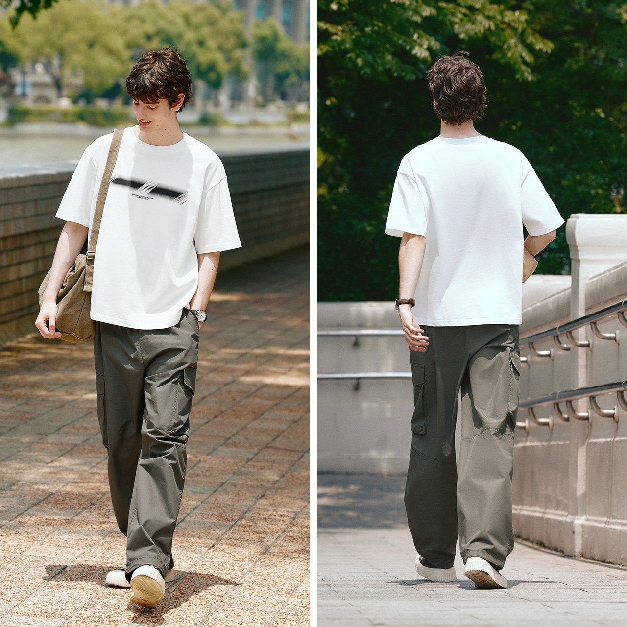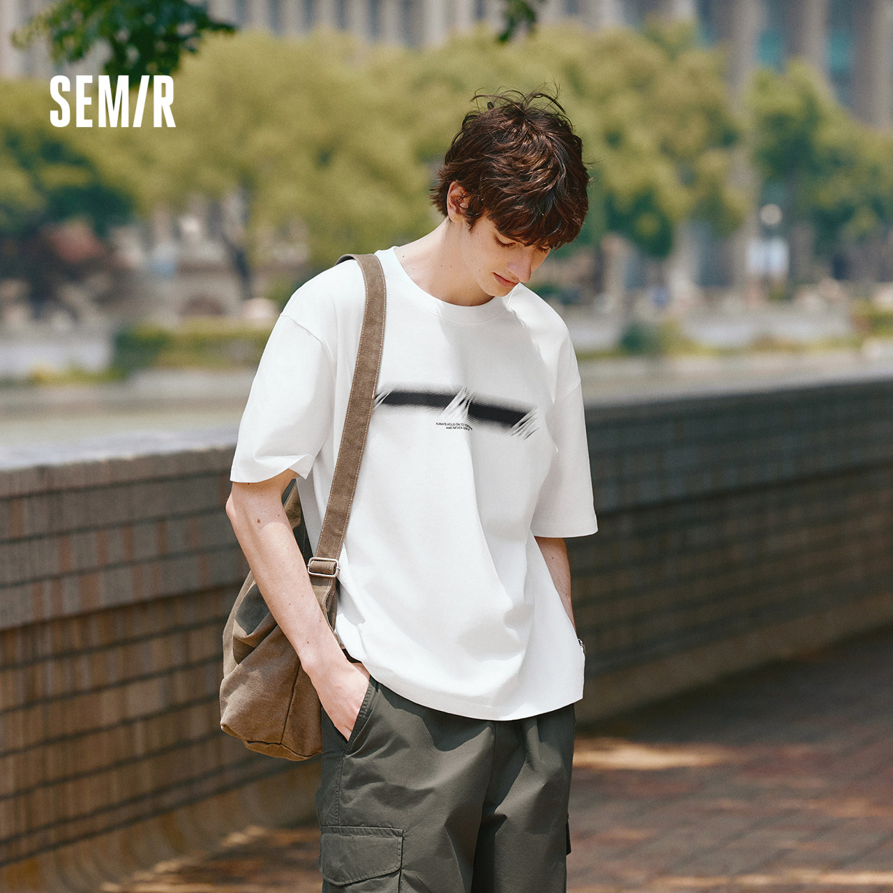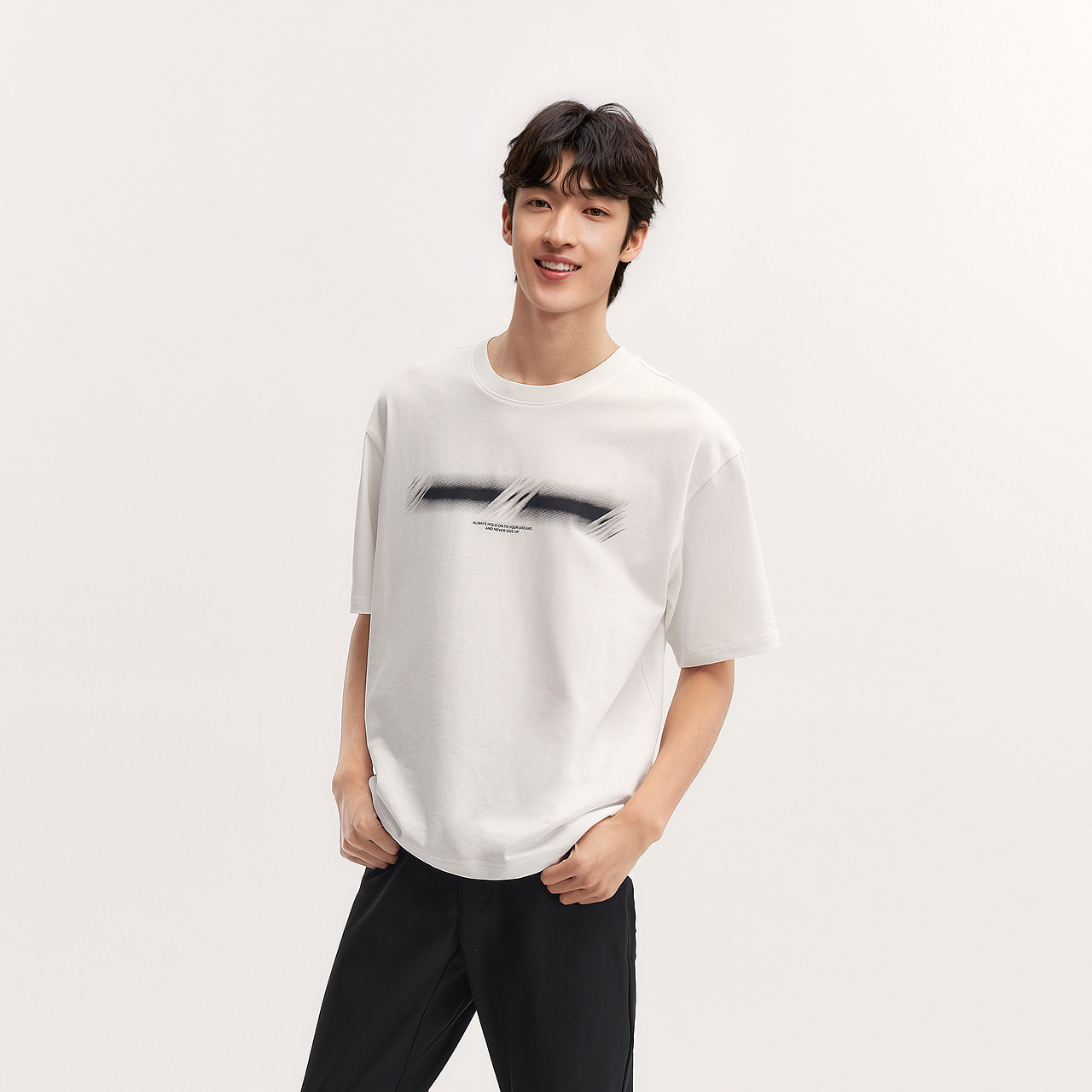 森马短袖T恤男撞色印花圆领针织上衣秋季宽松落肩休闲装简约百搭