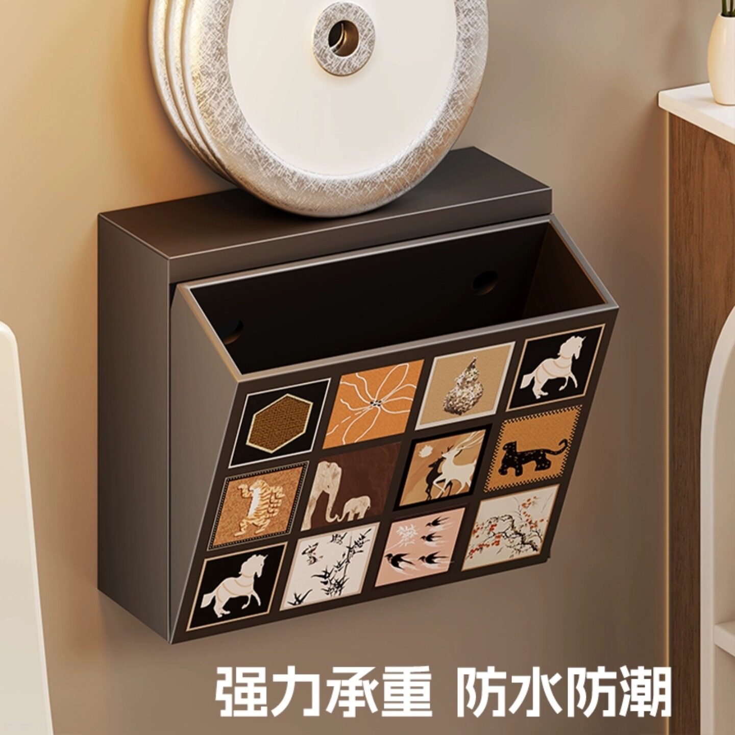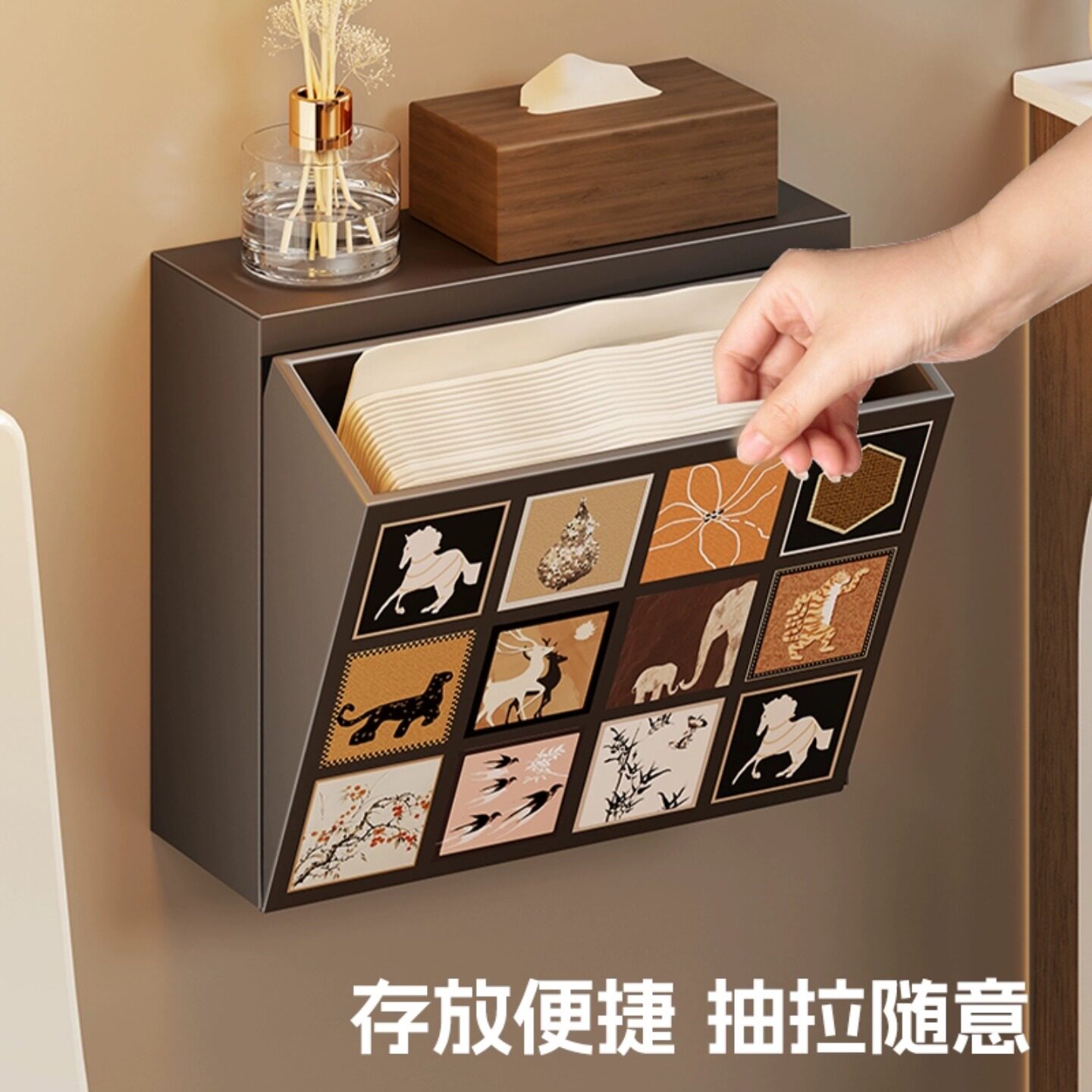 冰川纹洗脸巾收纳盒壁挂式纸巾盒家用轻奢风卫生间厨房倒挂抽纸盒