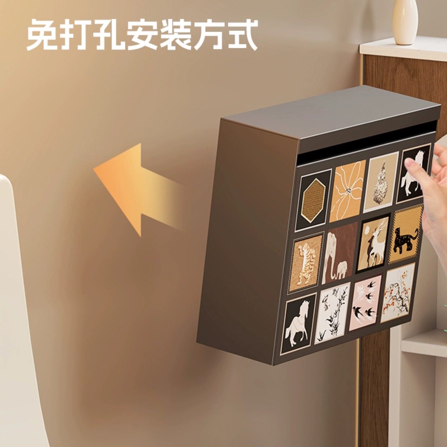 轻奢吸盘纸巾收纳盒免打孔家用卫生间壁挂式收纳盒浴室便捷抽纸盒