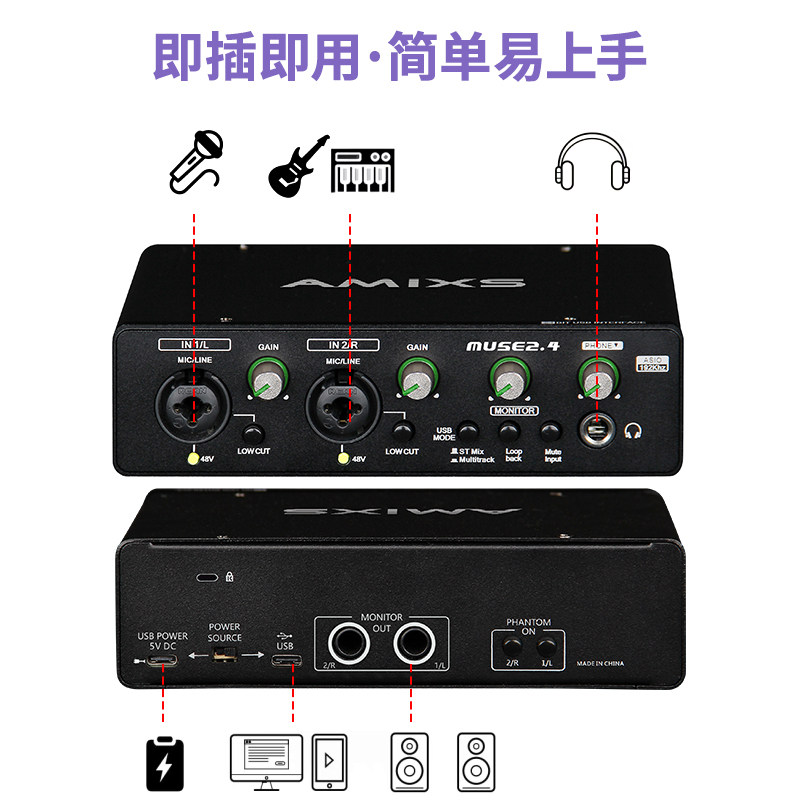 AMIXS专业录音外置声卡电脑硬件ASIO机架编曲混音有声书配音设备