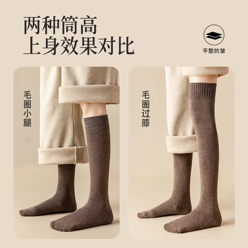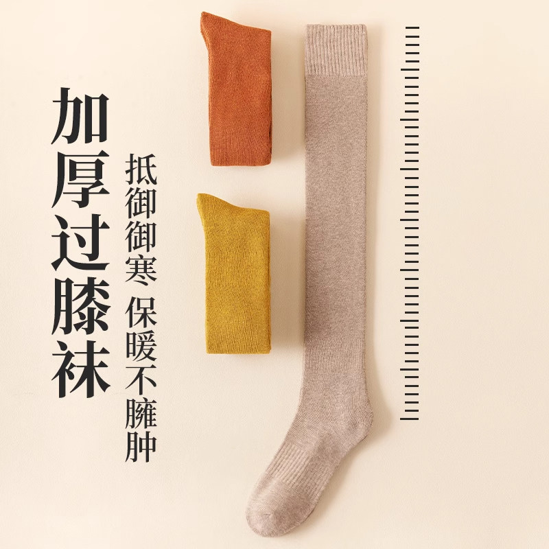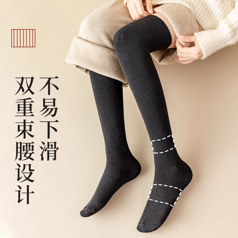 过膝袜子女秋冬羊毛长筒袜加厚保暖护膝大腿袜纯棉压力显瘦高筒袜