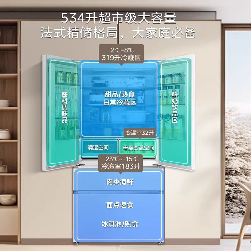 政府换新补贴海尔统帅618L双开对开门大容量无霜一级变频家用冰箱
