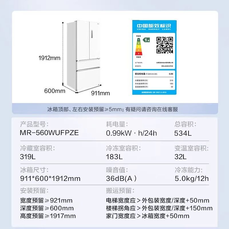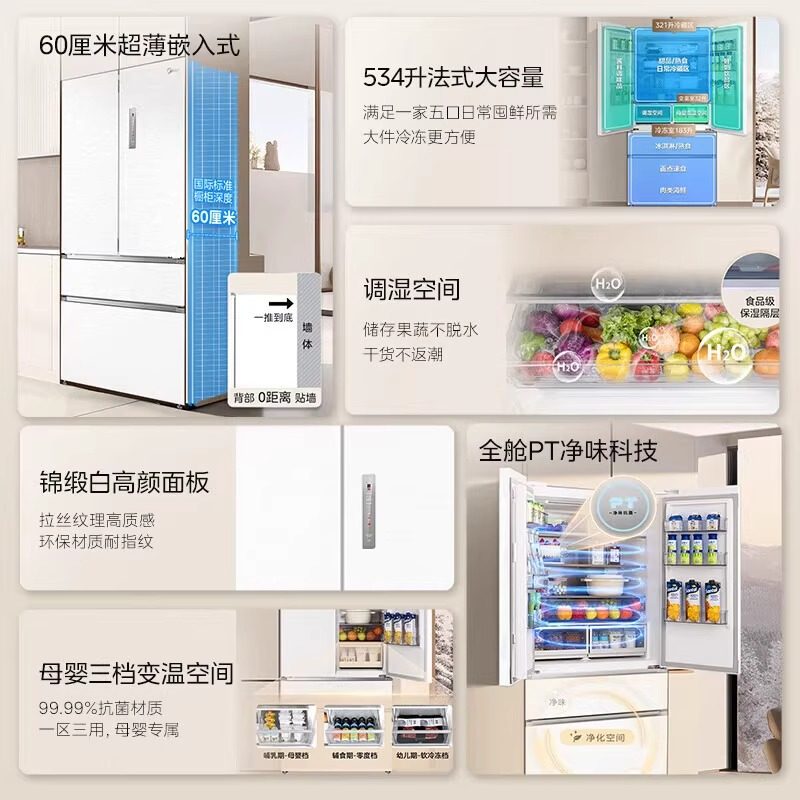 Midea/美的 MR-560WUFPZE560法式M60超薄零嵌入式风冷无霜冰箱