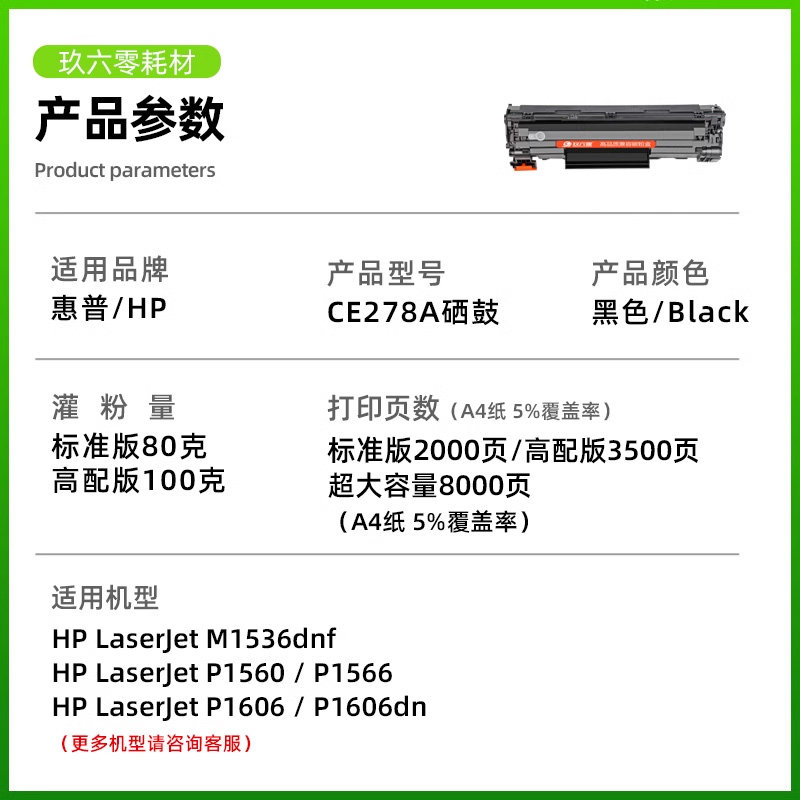 适用惠普M1536dnf硒鼓hp78a CE278A P1606dn打印机墨盒P1566 78a