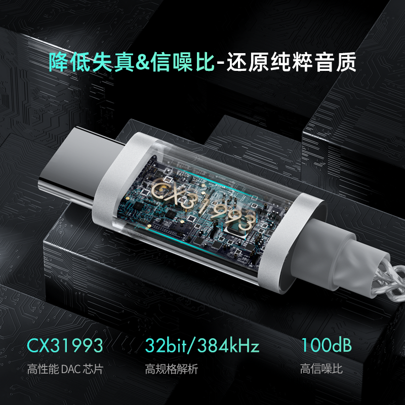旷世之声 Qlink-C HiFi解码耳放线耳机Type-C转接线CX31993小尾巴