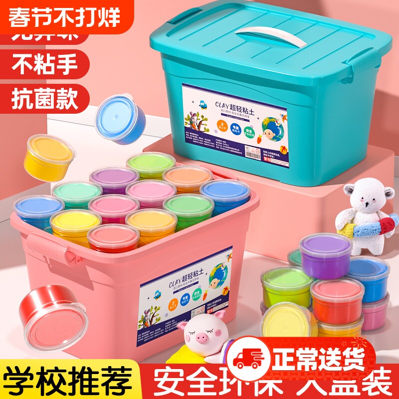 超轻粘土儿童无味食品彩太空泥24色橡皮泥幼儿园级黏土36专用玩具