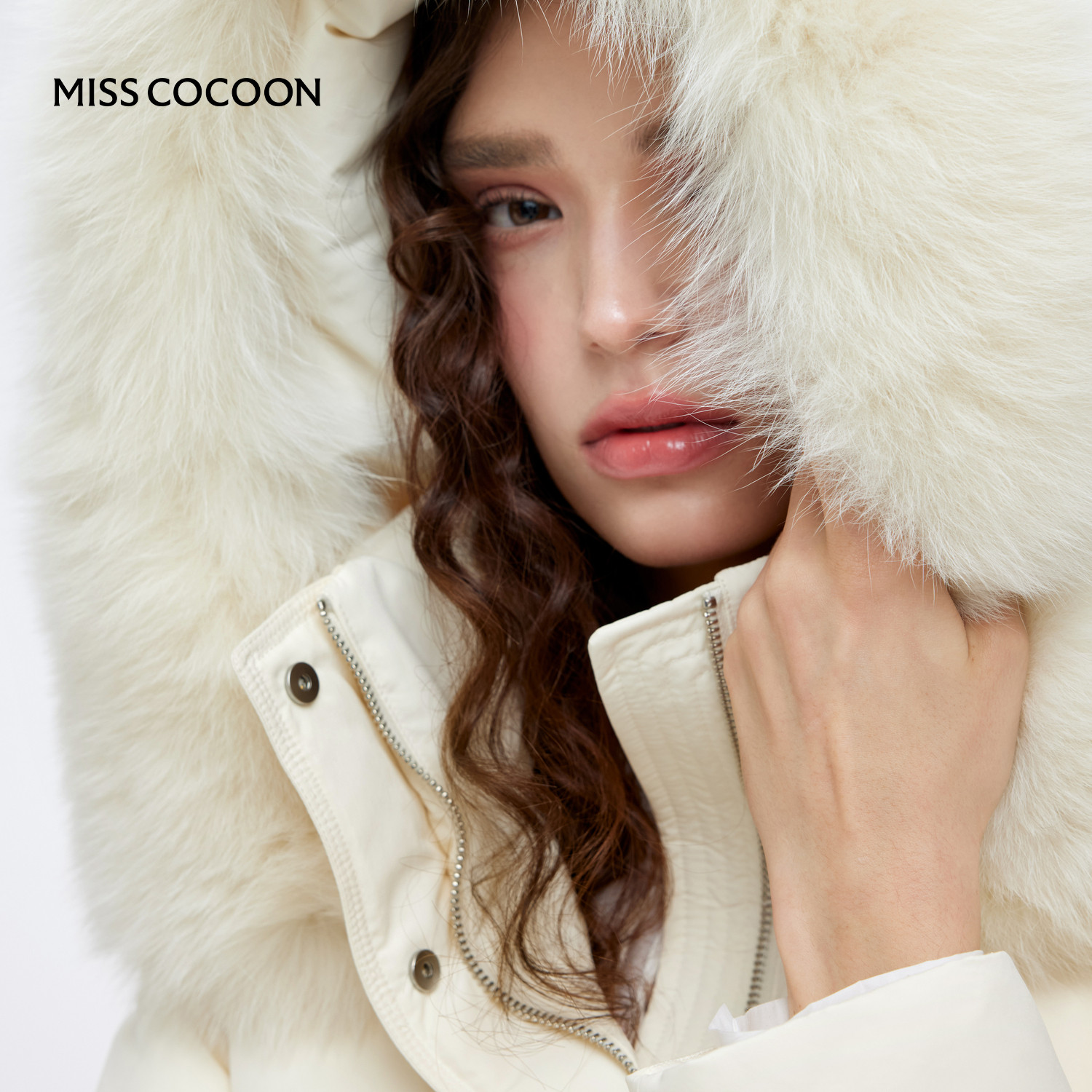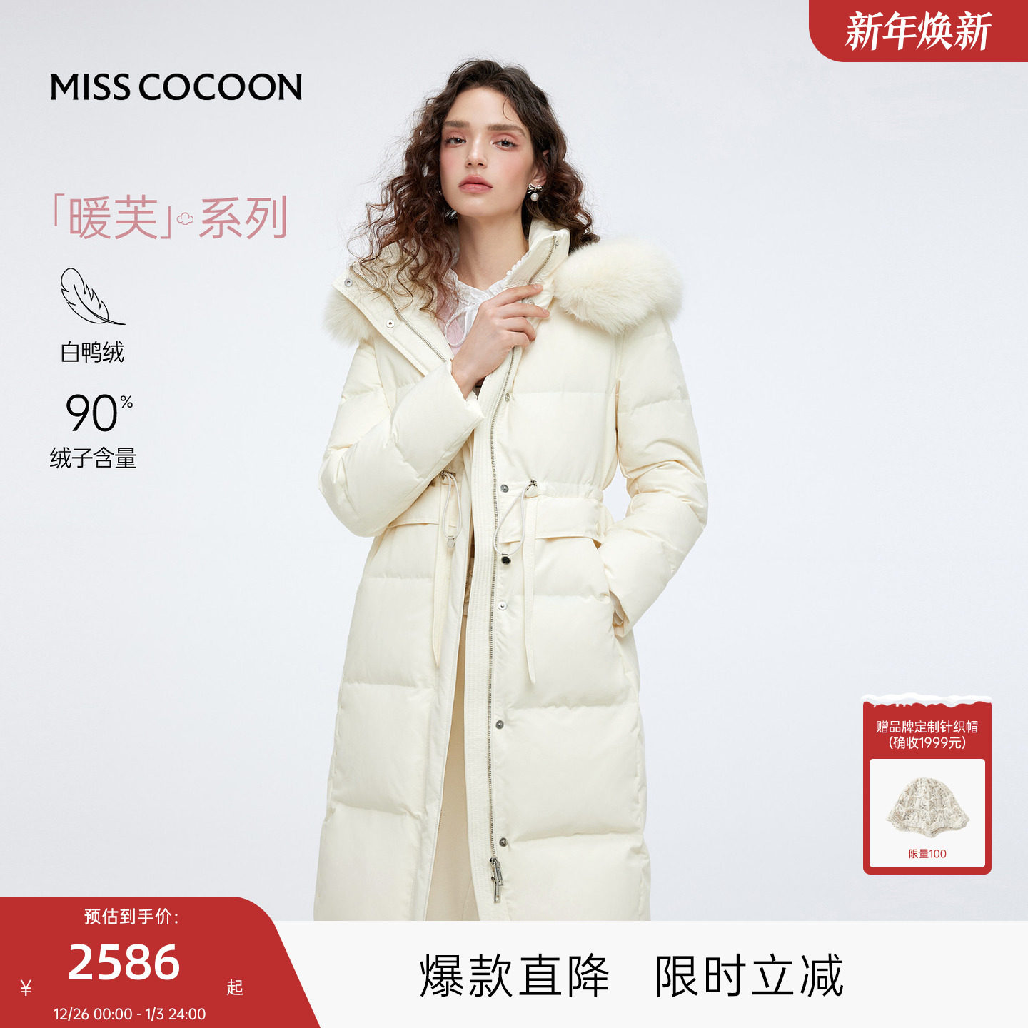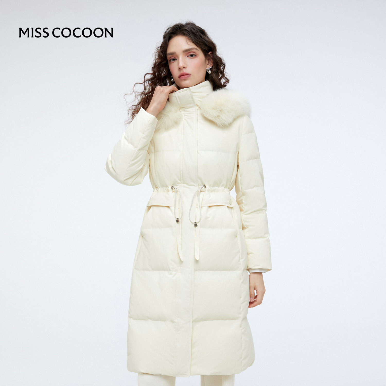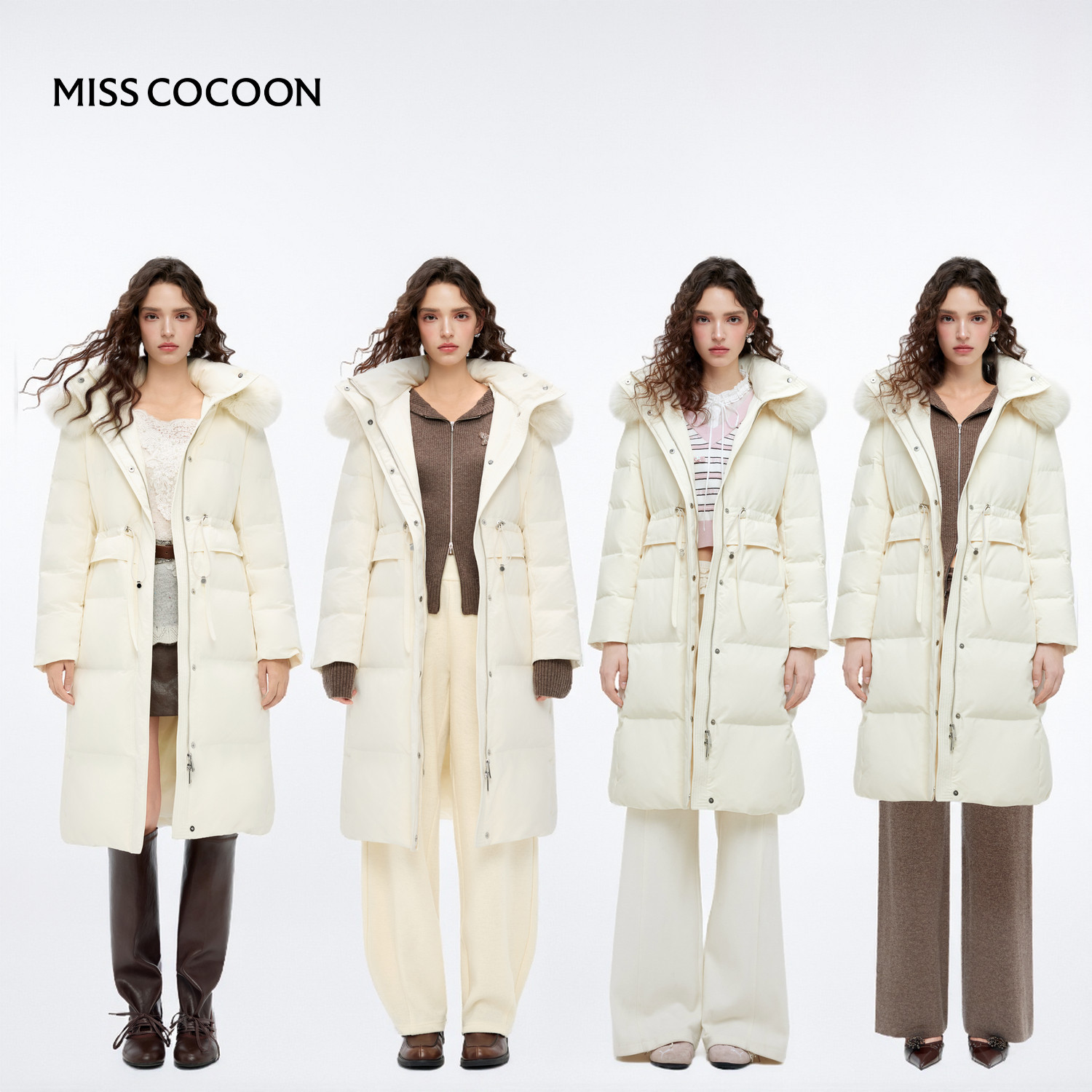 MISSCOCOON可可尼狐狸毛领2025冬新款连帽长款90安心鸭绒羽绒服女