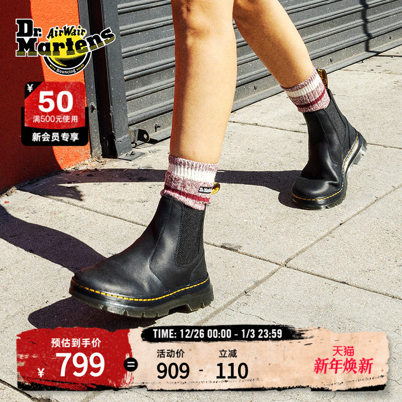 Dr.Martens马丁博士Embury男女款冬户外通勤舒适百搭黑色切尔西靴