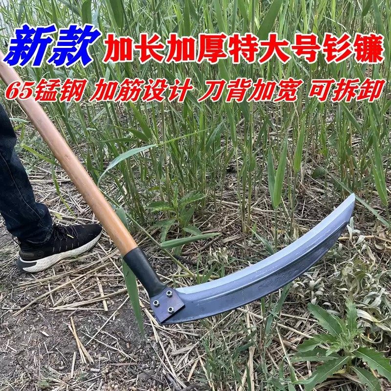 锰钢加长大钐镰刀长柄割蒿草镰刀农用割芦苇可拆卸左右手大钐刀