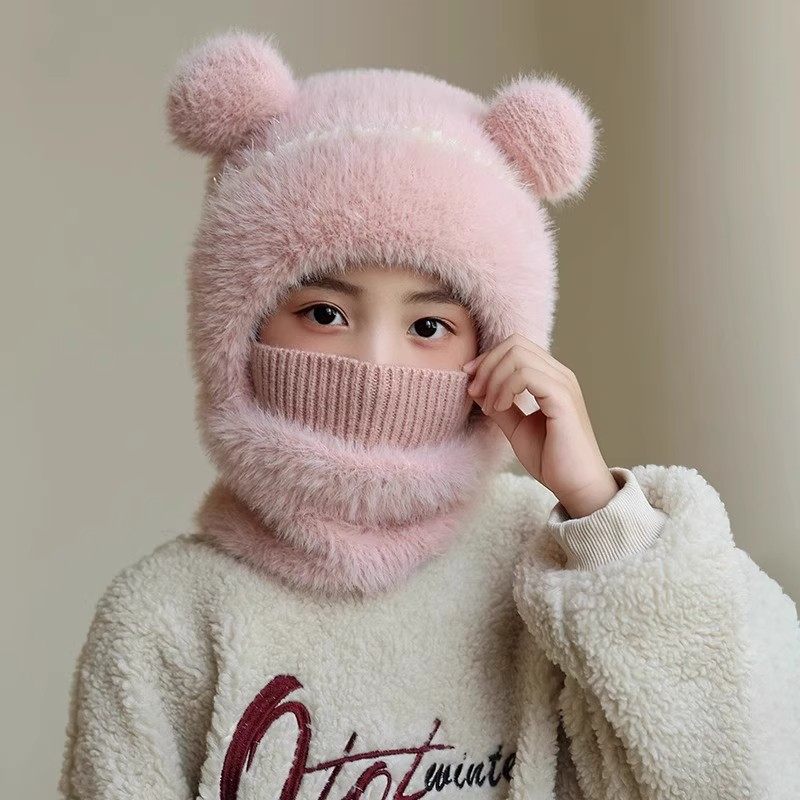 儿童帽子2025秋冬男女童围巾一体保暖加厚围脖护耳帽套头帽毛绒帽
