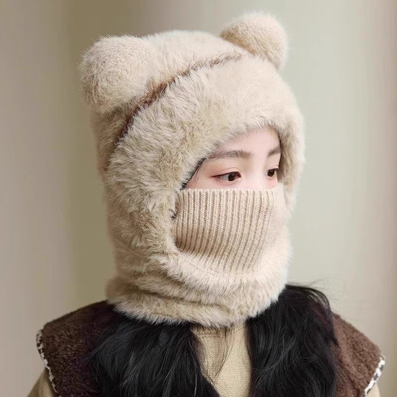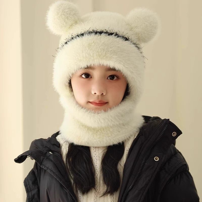 围巾帽子手套一体女连帽冬季帽可爱保暖围脖毛绒冬天三件套厚防寒
