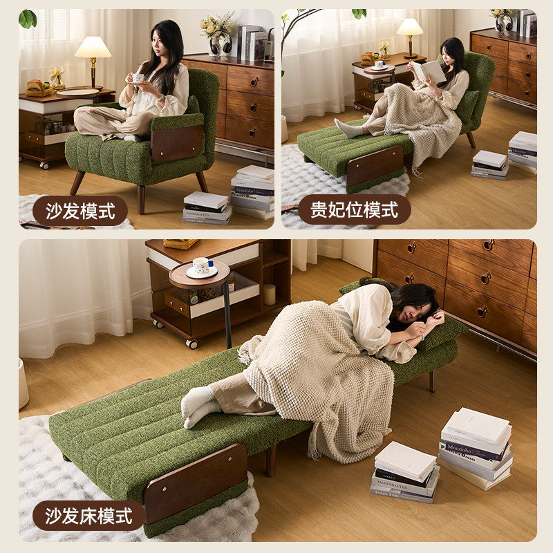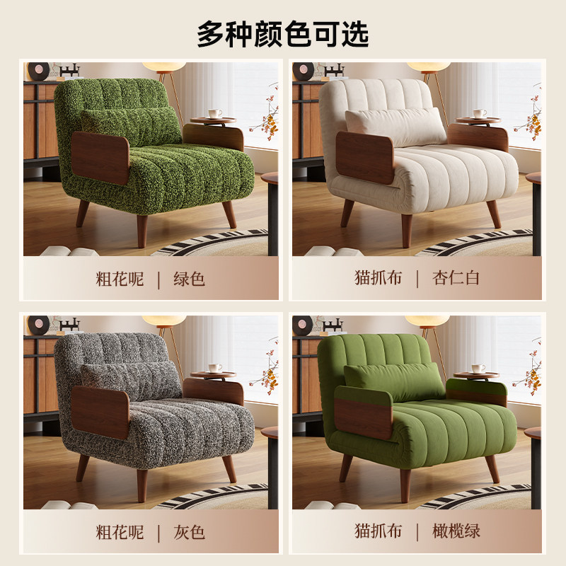 木宫匠家具翡翠沙发床中古风可折叠单人两用一体客厅布艺沙发新款