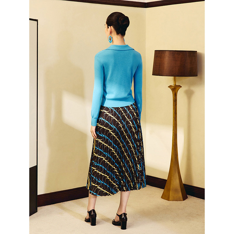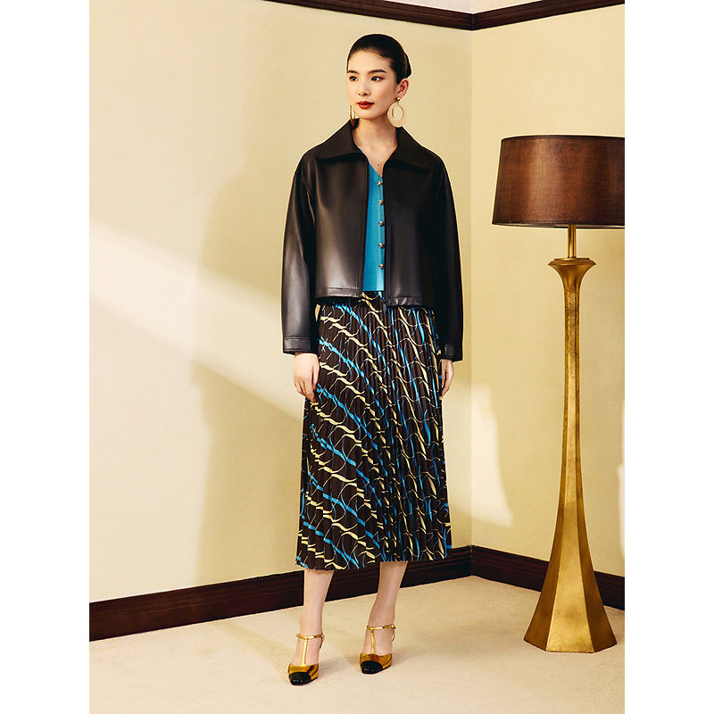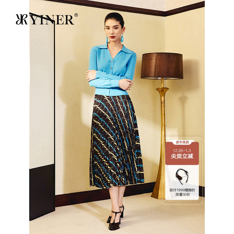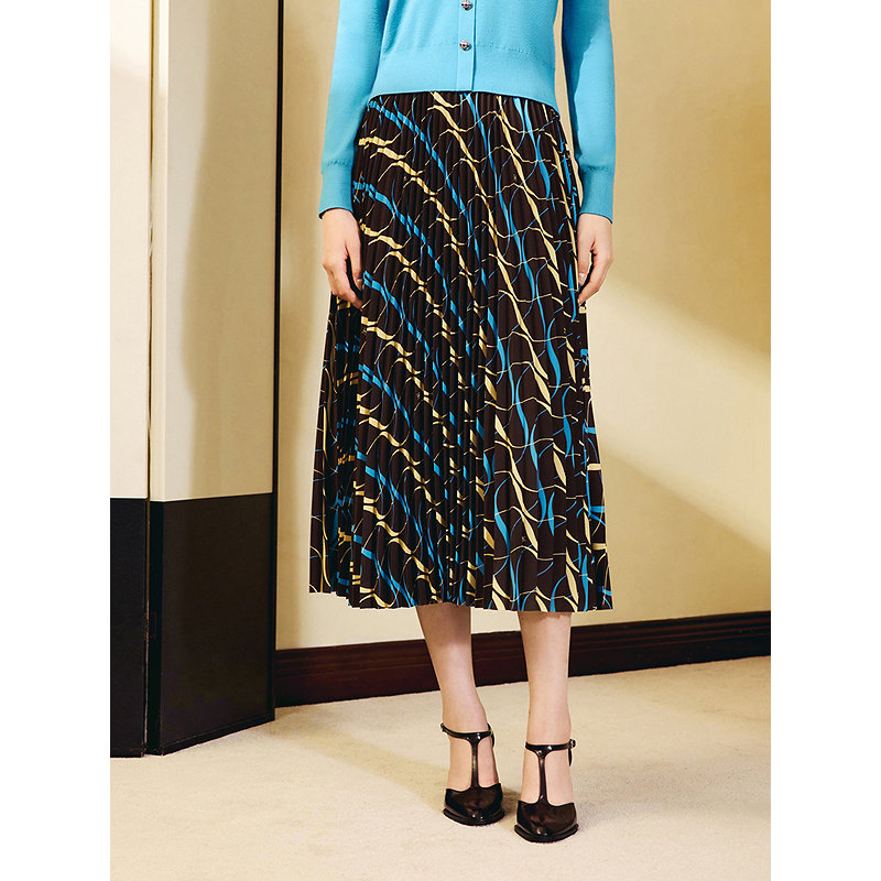 【1996系列】YINER音儿2025秋季新款雪纺中长艺术印花百褶半身裙