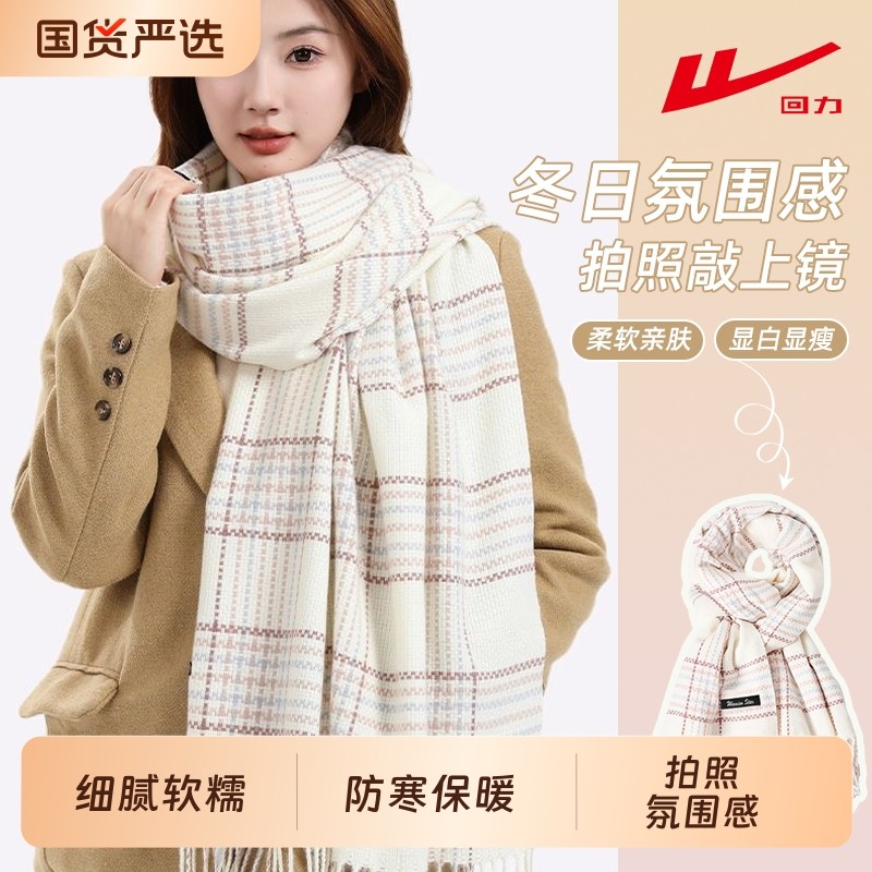 回力格子围巾女冬高级感新款加厚百搭氛围感保暖披肩红色白色防寒