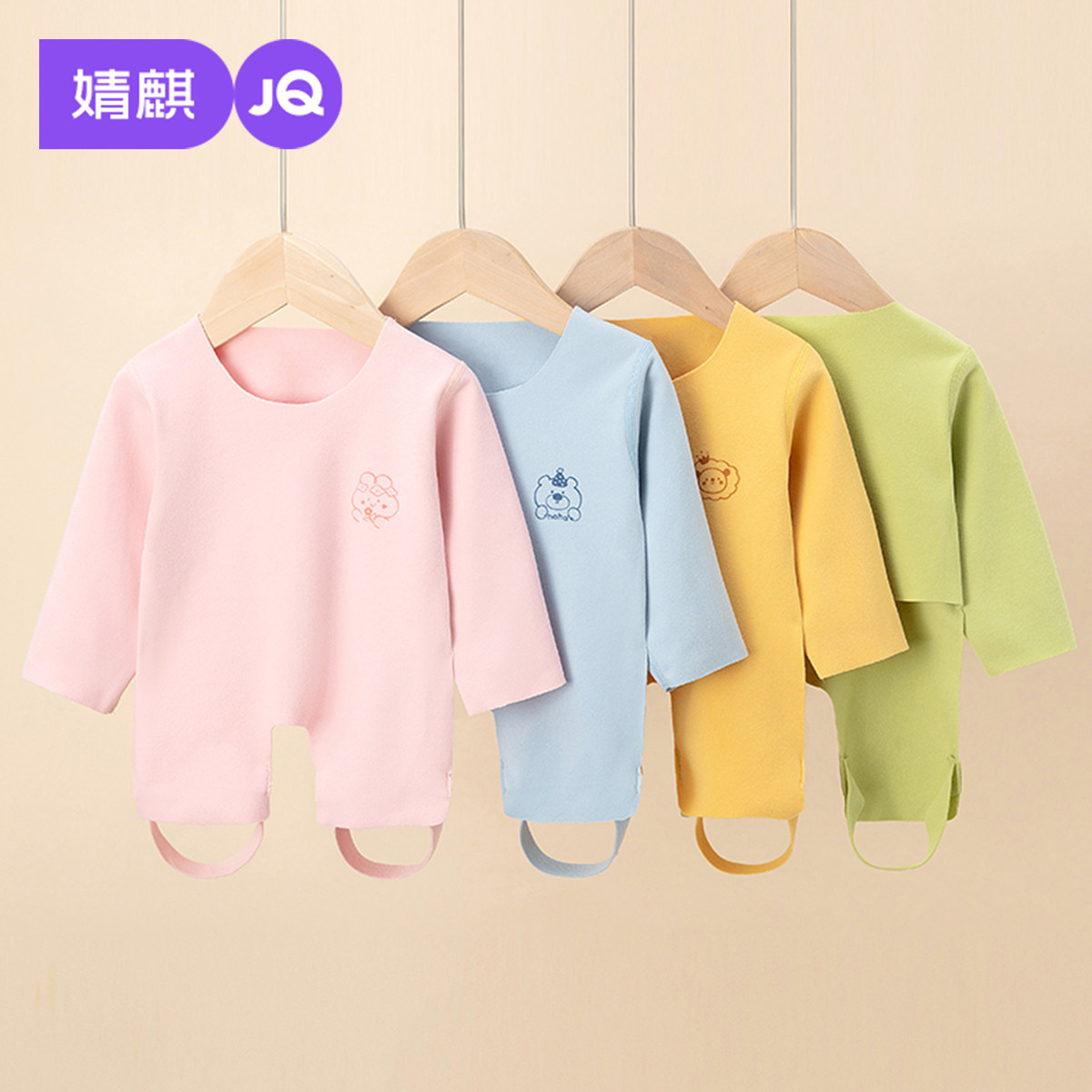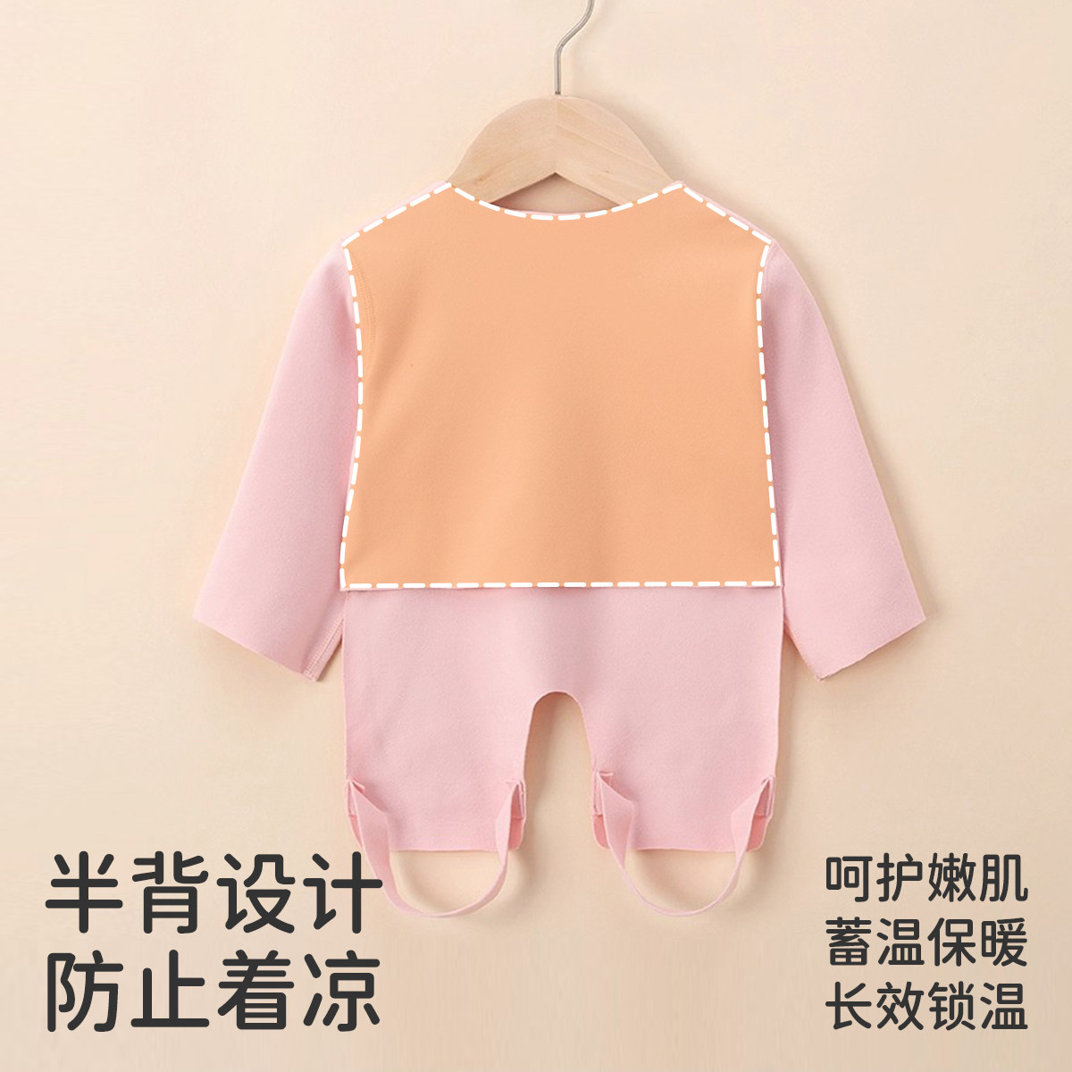 婧麒婴儿肚兜宝宝秋冬季护肚脐德绒长袖男女宝宝半背连腿护肚衣服
