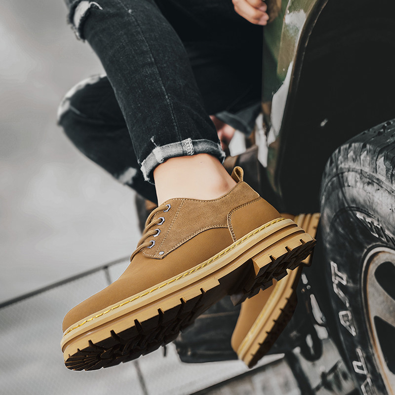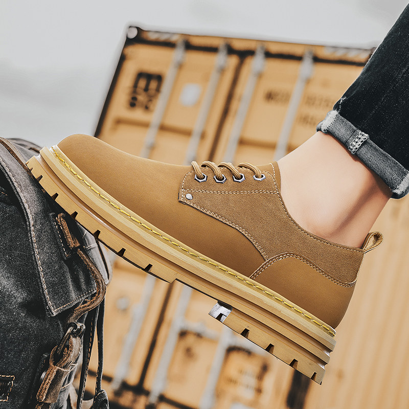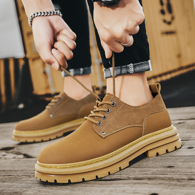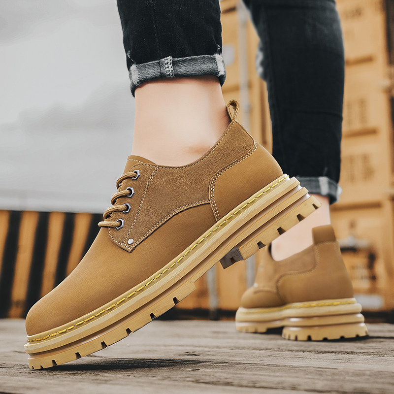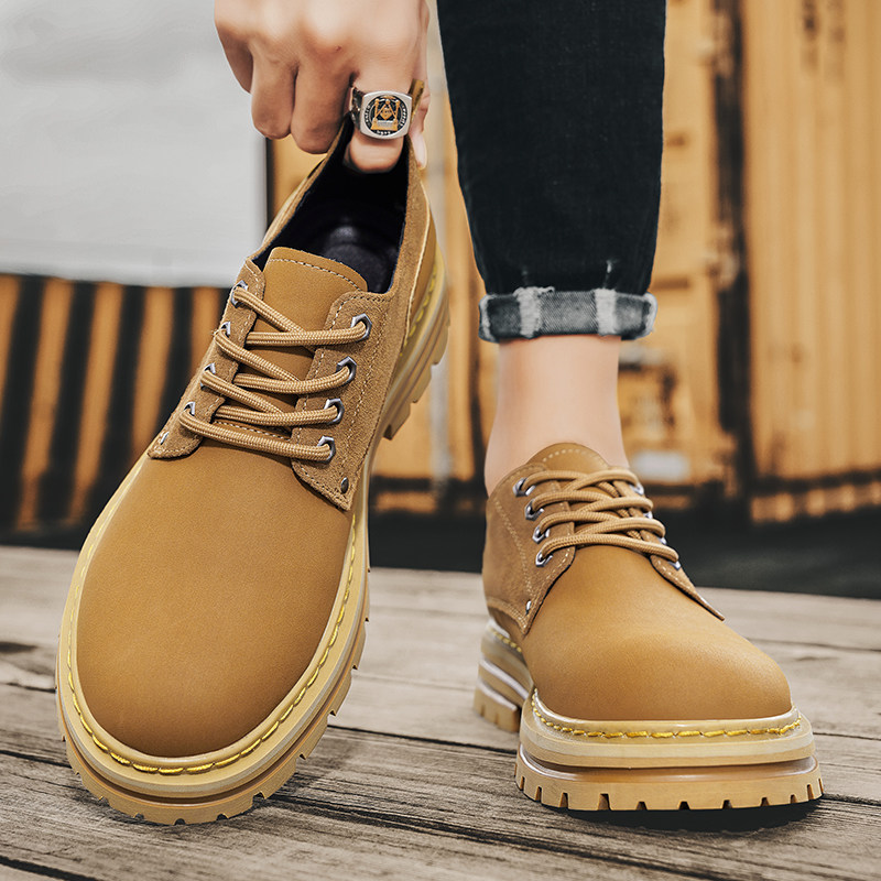 男鞋2025新款复古真皮大头工装鞋男士低帮马丁靴厚底休闲皮鞋棕色
