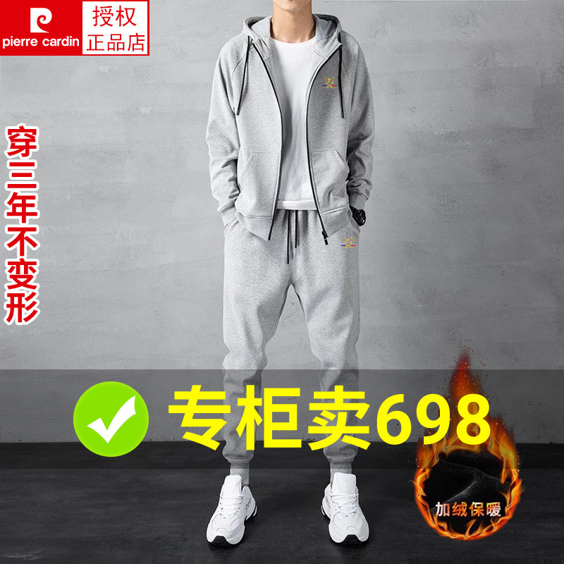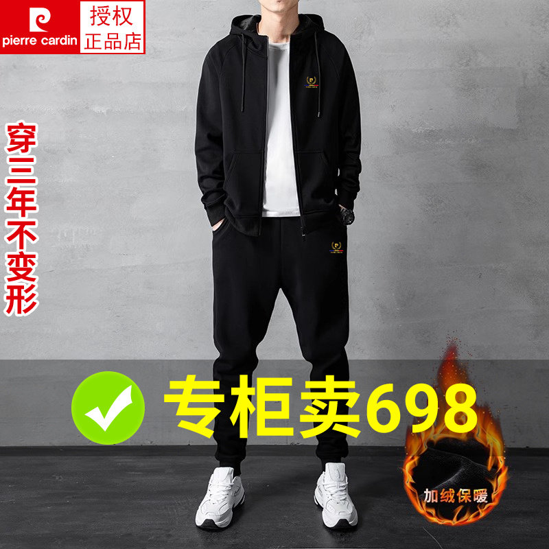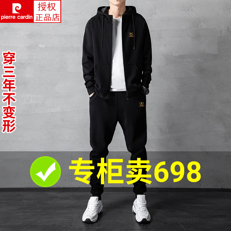 正品皮尔卡丹运动套装男士高端刺绣运动服休闲两件套秋冬季三件套