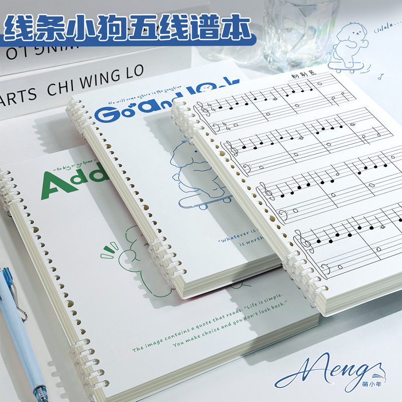 卡通B5五线谱活页本加厚不硌手可拆卸大间距吉他钢琴初学者宽距乐谱练习本音乐专业学生专用五线乐谱草稿本