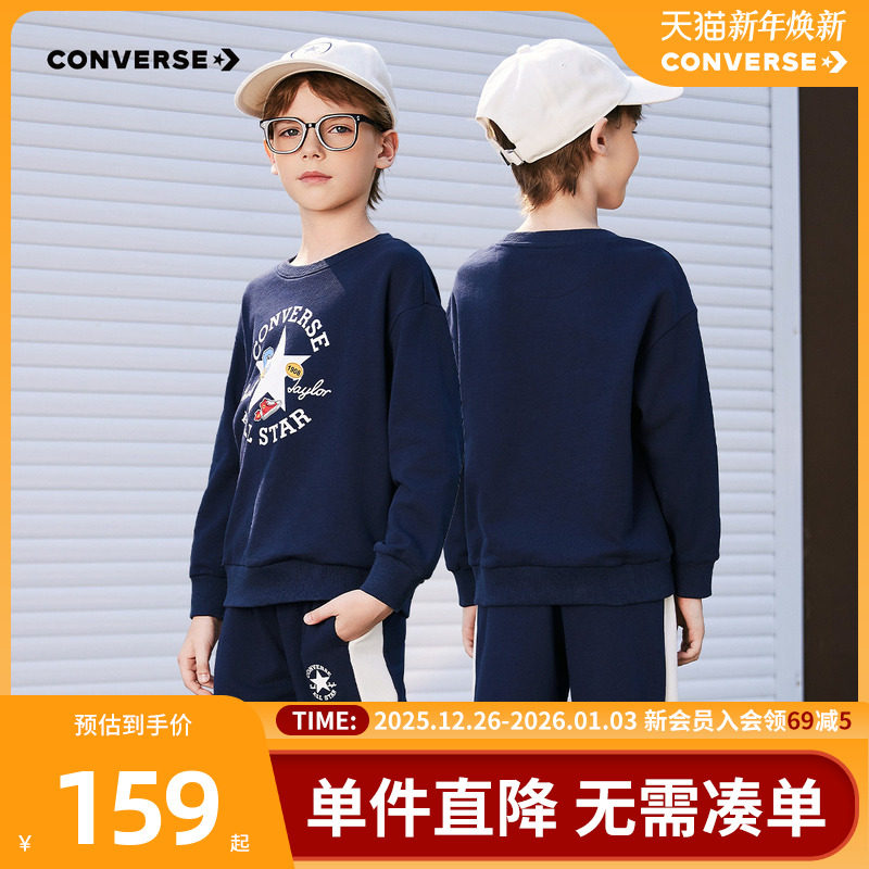 匡威童装男童套装2025冬季季加绒中大童卫衣长裤两件套校园运动服
