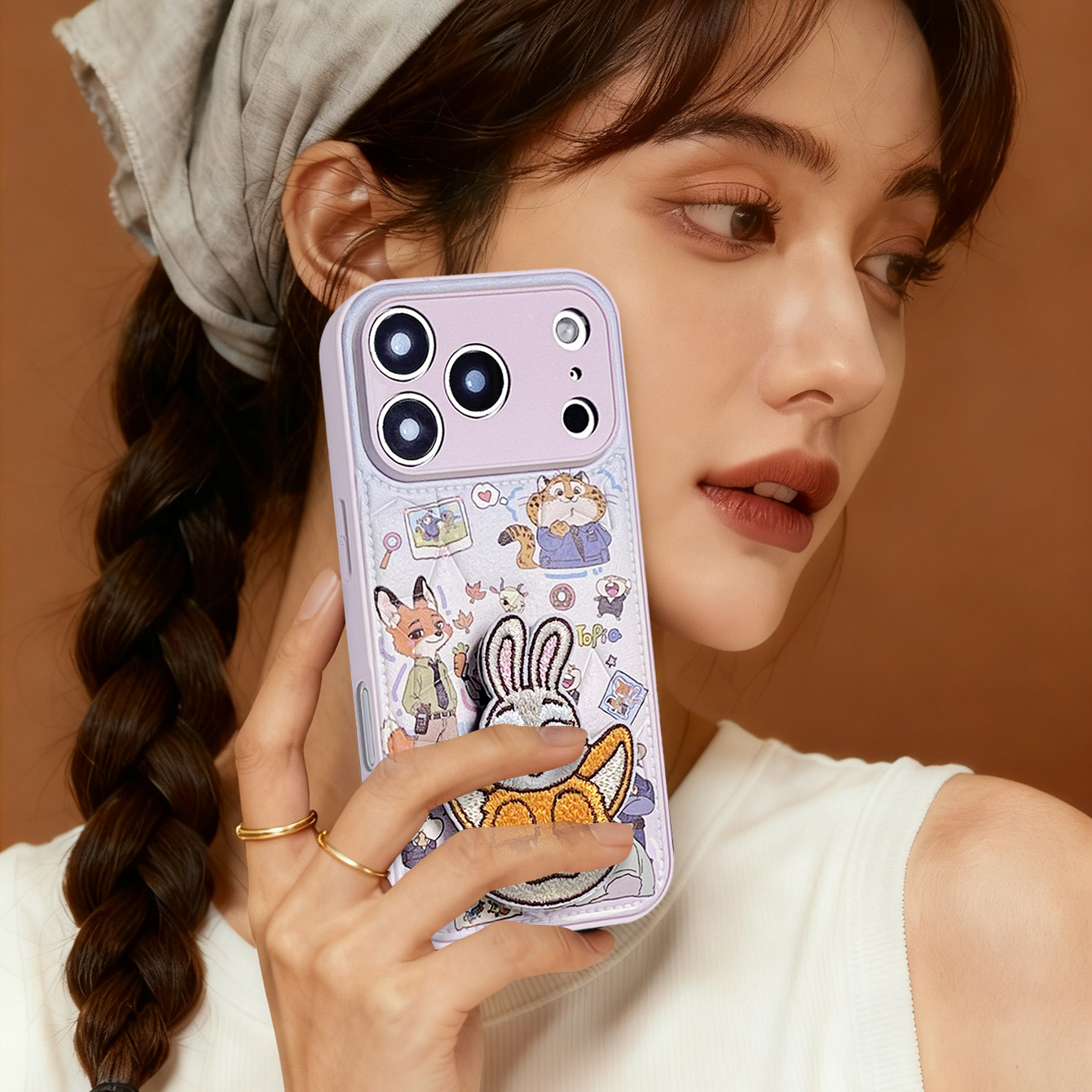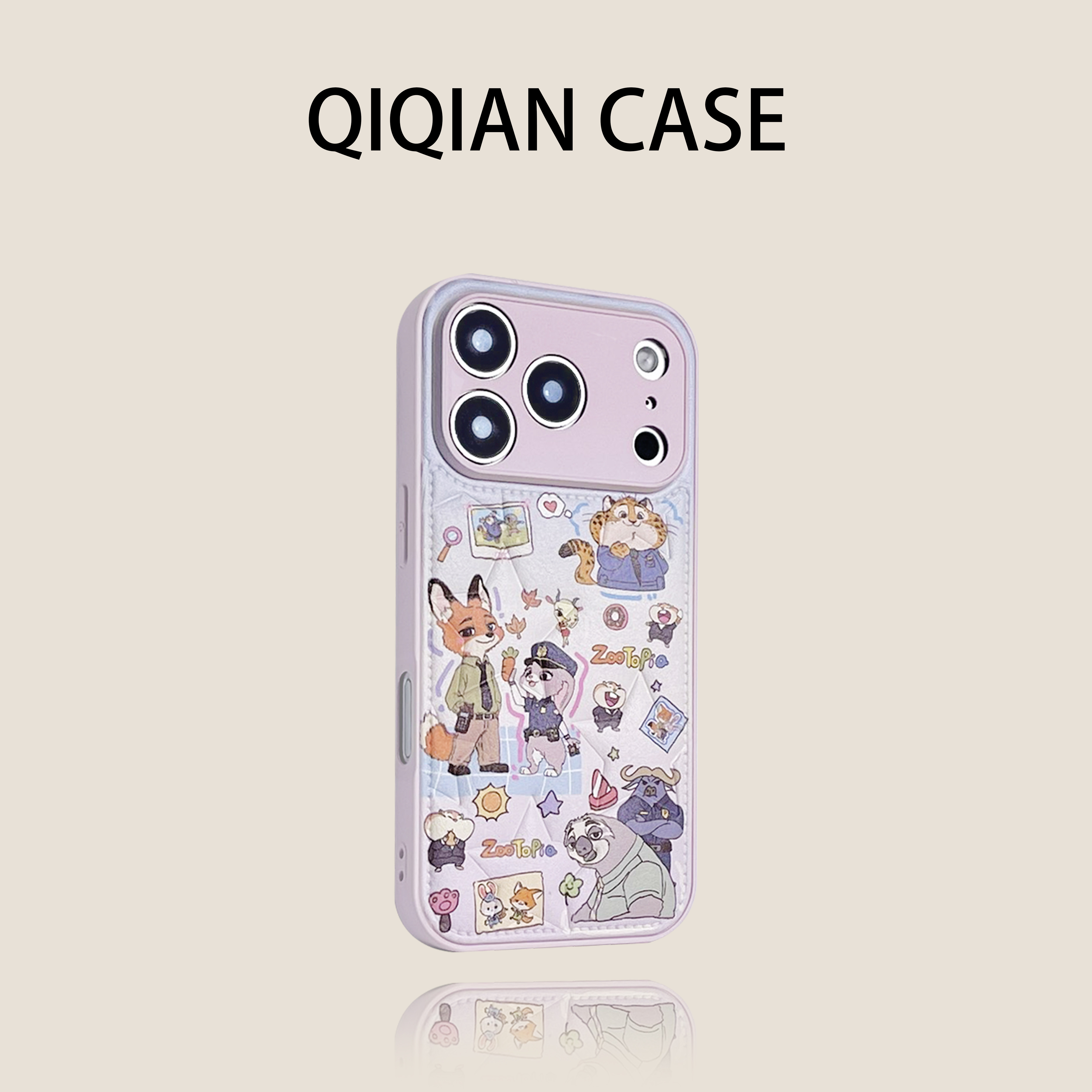 启乾 卡通星星压纹直边皮质鼓包朱迪尼克带支架iPhone17/16手机壳适用苹果15/14promax皮质硬壳13可爱少女心