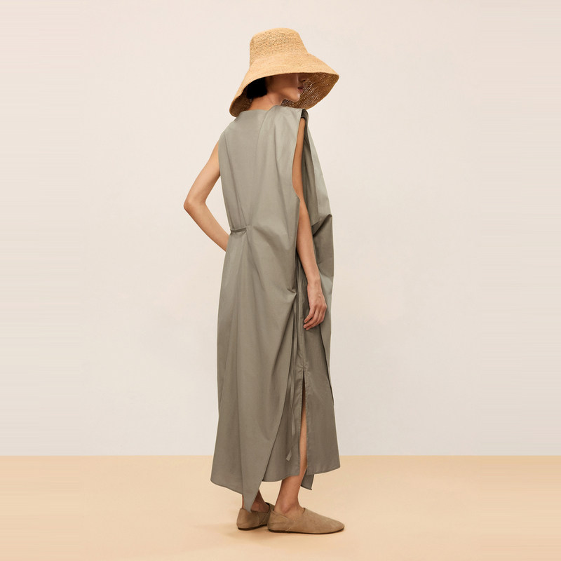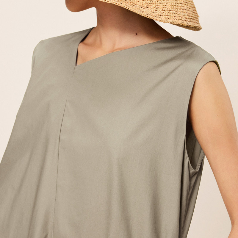 LESS夏季质感休闲不规则设计感简约棉质无袖气质连衣裙2O6G1397H