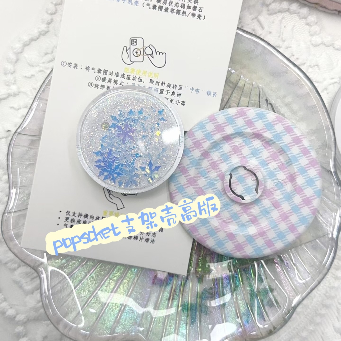 雪花流沙渐变泡泡流沙蓝粉泡泡磁吸手机支架适配PPS啪嗒替换帽