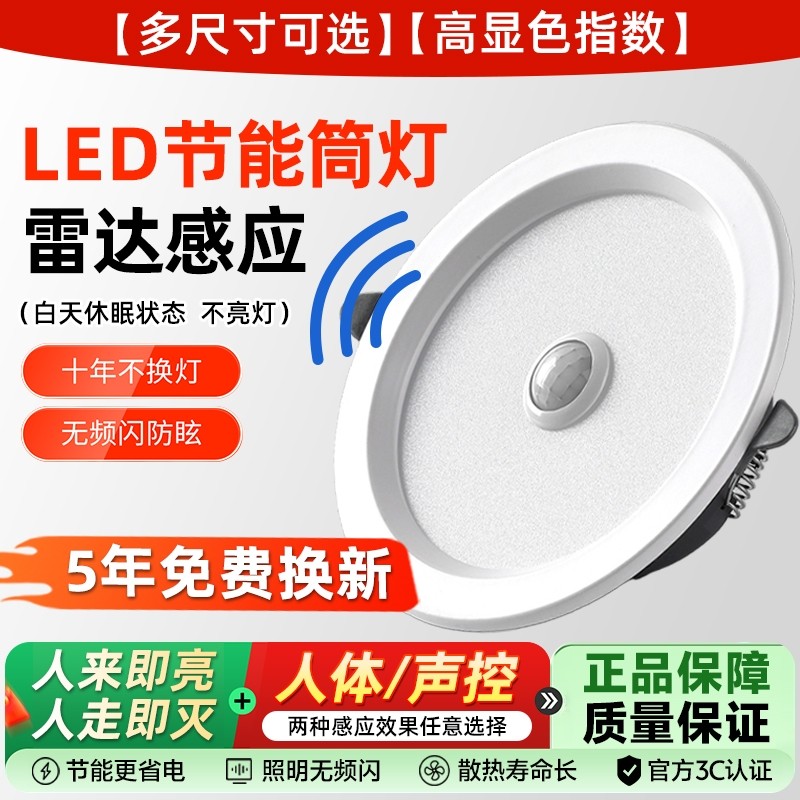 家用走廊筒灯led人体感应嵌入式孔灯雷达瓦过道射灯超薄开孔夜间